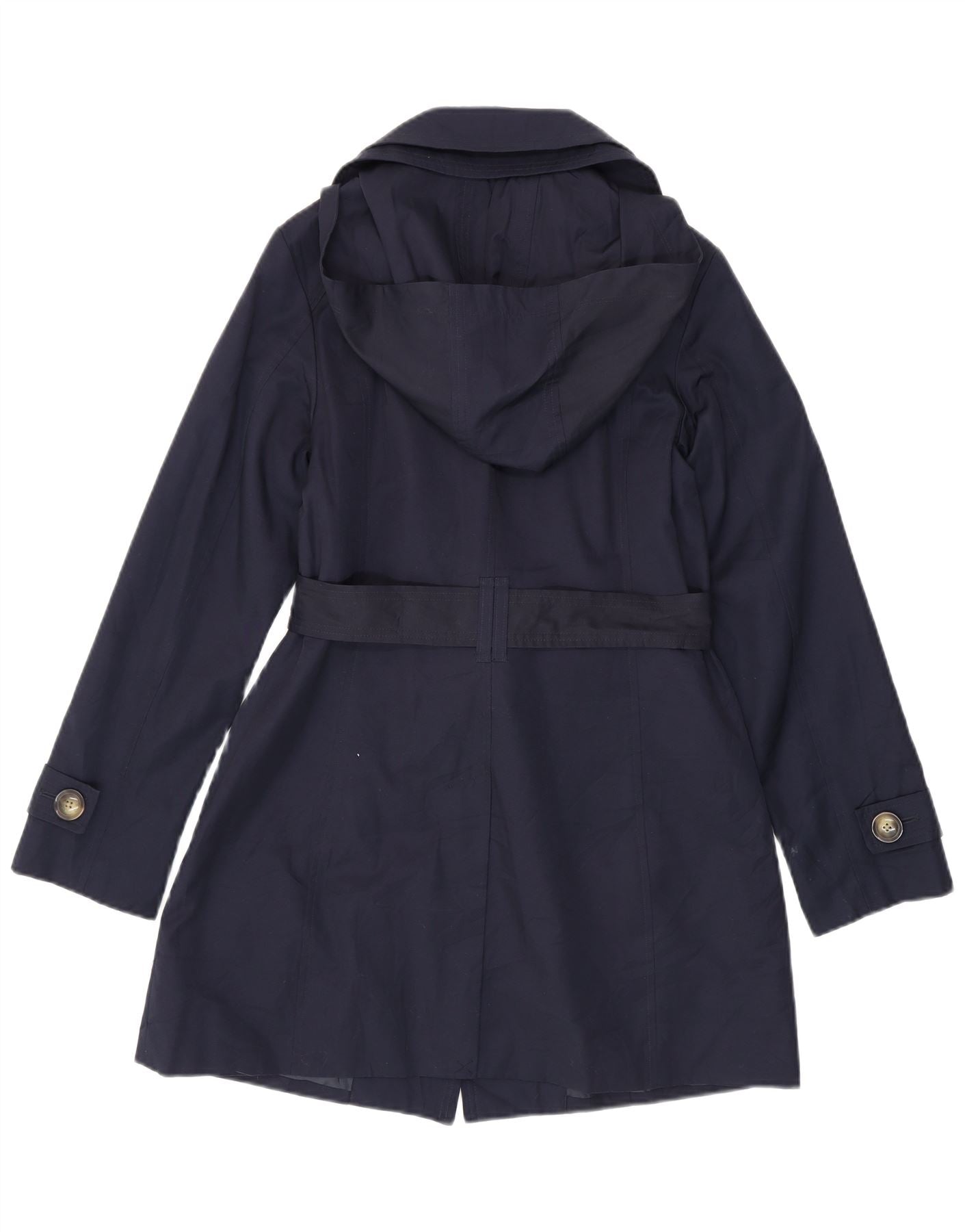 Trench con cappuccio da donna LONDON FOG UK 10 piccolo in cotone blu navy