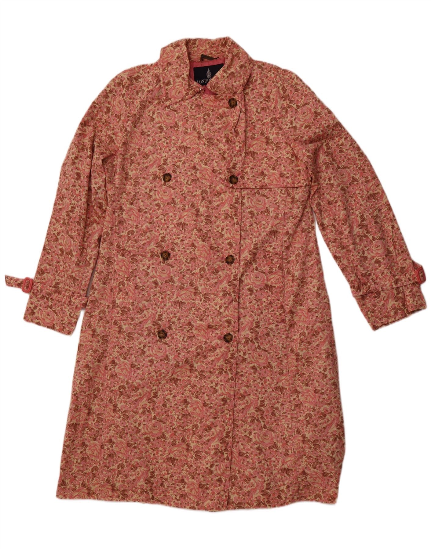 Trench da donna LONDON FOG UK 16 grande cotone floreale rosa