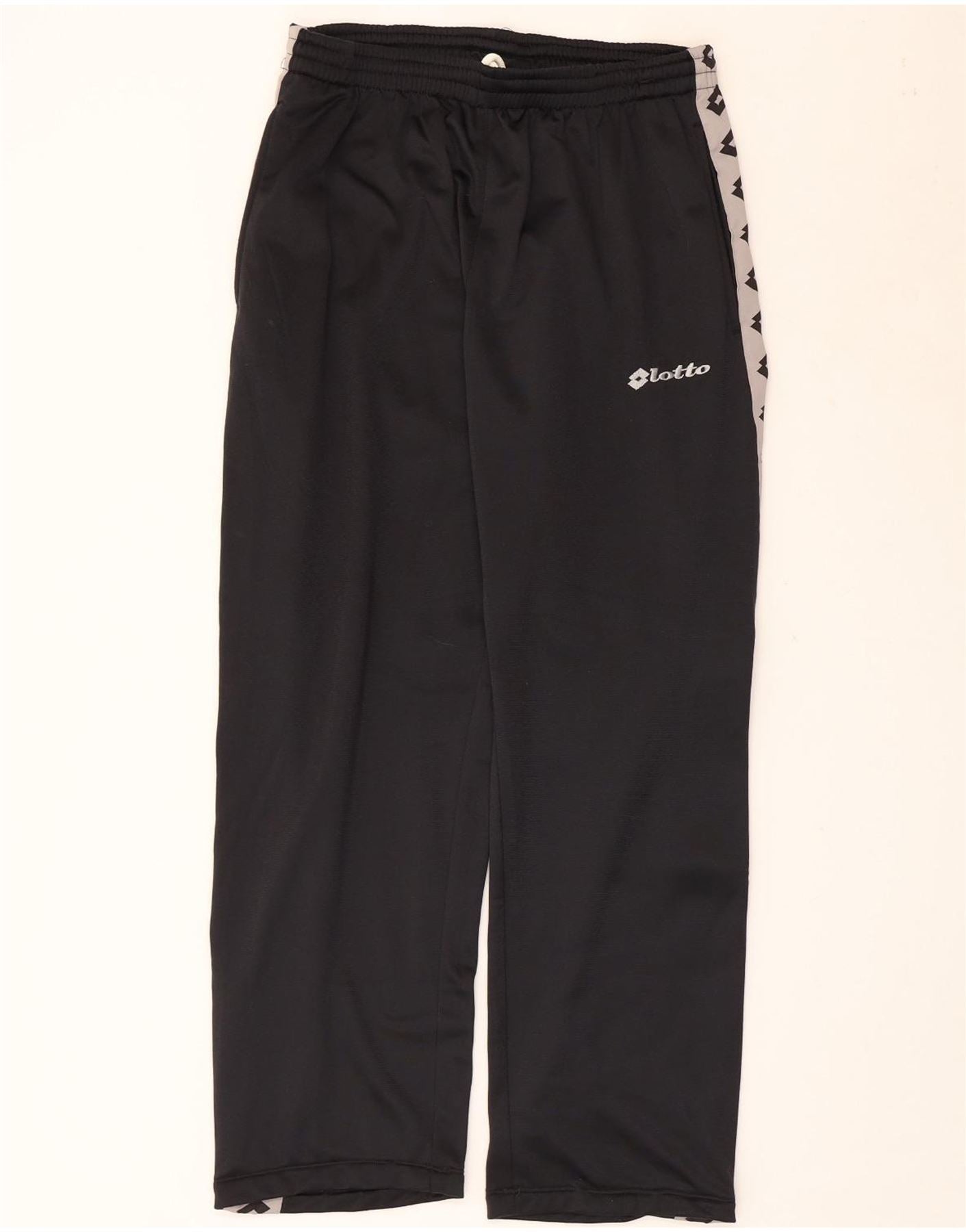 - Descrizione dell'IA: Questi pantaloni da tuta da uomo Lotto sono realizzati in tessuto jersey nero, offrendo una sensazione morbida e confortevole. Sono dotati di vita elasticizzata per una vestibilità facile e regolare. Le gambe hanno un taglio dritto, garantendo libertà di movimento. Le distintive strisce laterali grigie con loghi Lotto ripetuti aggiungono un'estetica sportiva classica. Sul davanti è presente anche un piccolo logo Lotto. Ideale per il calcio o per l'abbigliamento casual.