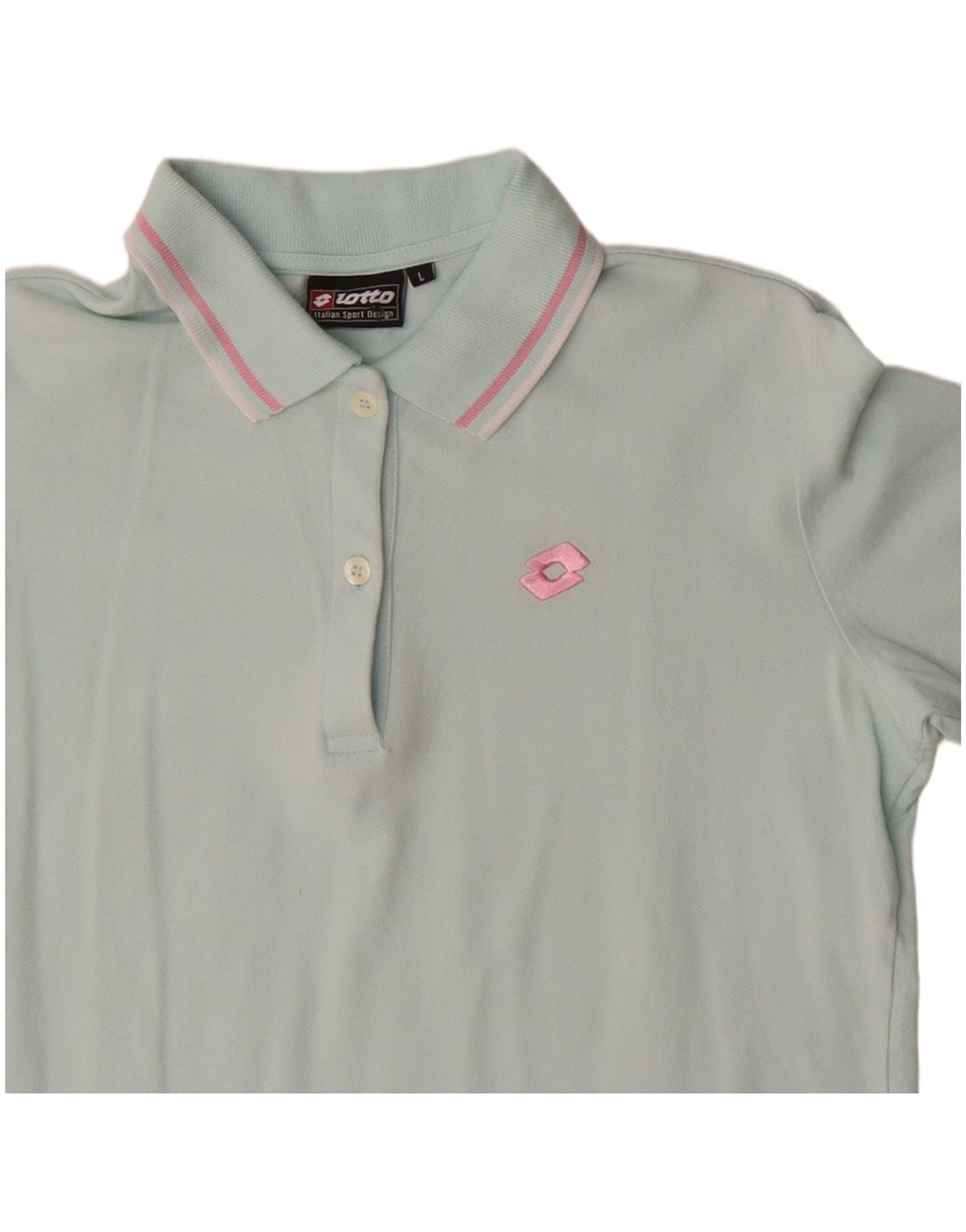 - Descrizione dell'IA: Questa polo da donna Lotto è realizzata in morbido tessuto jersey blu. Presenta uno scollo classico con colletto e abbottonatura a due bottoni. Le maniche corte e la vestibilità regolare garantiscono un'usura confortevole. Dettagli a strisce rosa adornano il colletto e i polsini delle maniche. Un prominente logo rosa ricamato si trova sul petto. Questo design offre un'estetica sportiva ma raffinata, perfetta per giornate casual o attive.