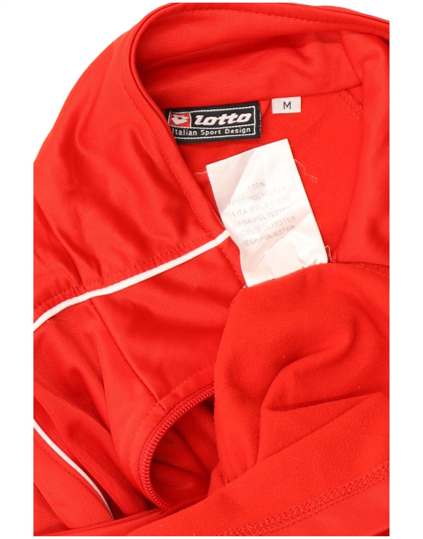 - Descrizione dell'IA: Questa maglia della tuta da donna Lotto è realizzata in tessuto a maglia di poliestere rosso liscio. Presenta un collo alto e una chiusura full zip. Le maniche lunghe offrono un'ampia copertura. La vestibilità regolare garantisce un movimento confortevole. I dettagli di tubazioni bianche accentuano le spalle e le tasche anteriori. Sul petto è presente un discreto logo del marchio. Questo capo offre un look sportivo ma raffinato.