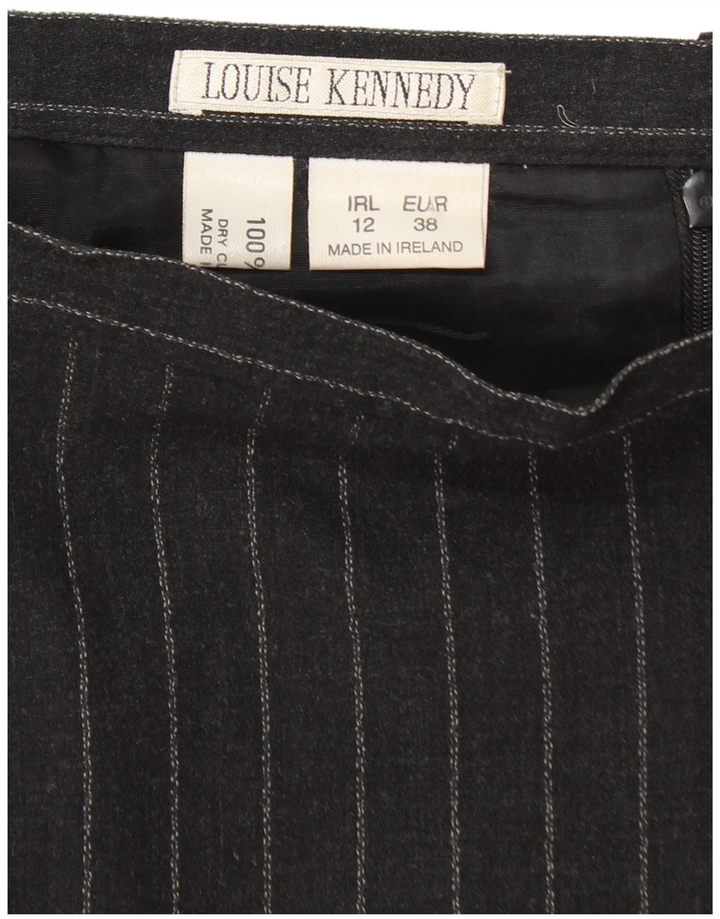 LOUISE KENNEDY Gonna a tubino da donna EU 38 Media W28 Lana gessata nera