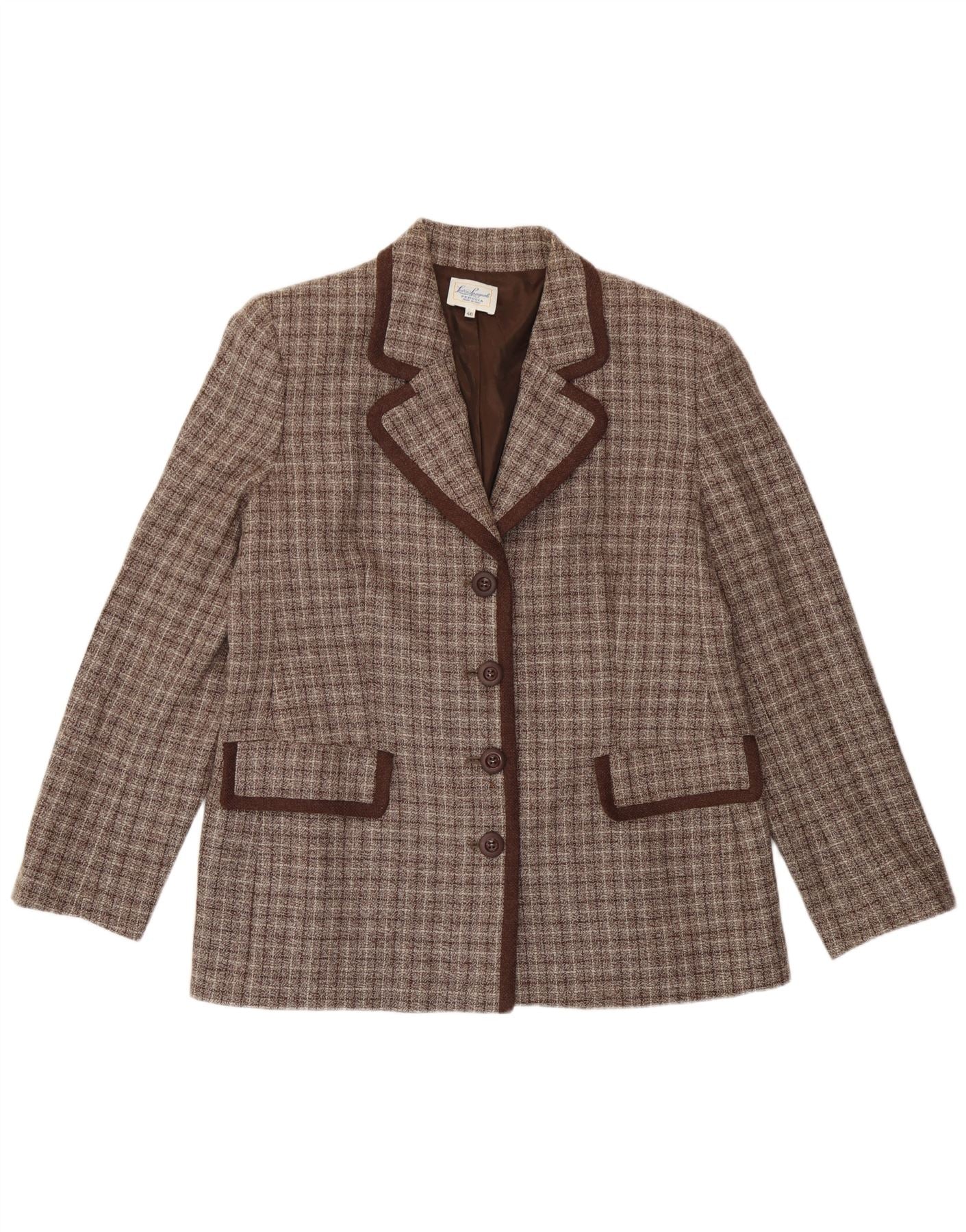 Giacca Blazer a 4 Bottoni da Donna Luisa Spagnoli IT 46 Large Brown Check