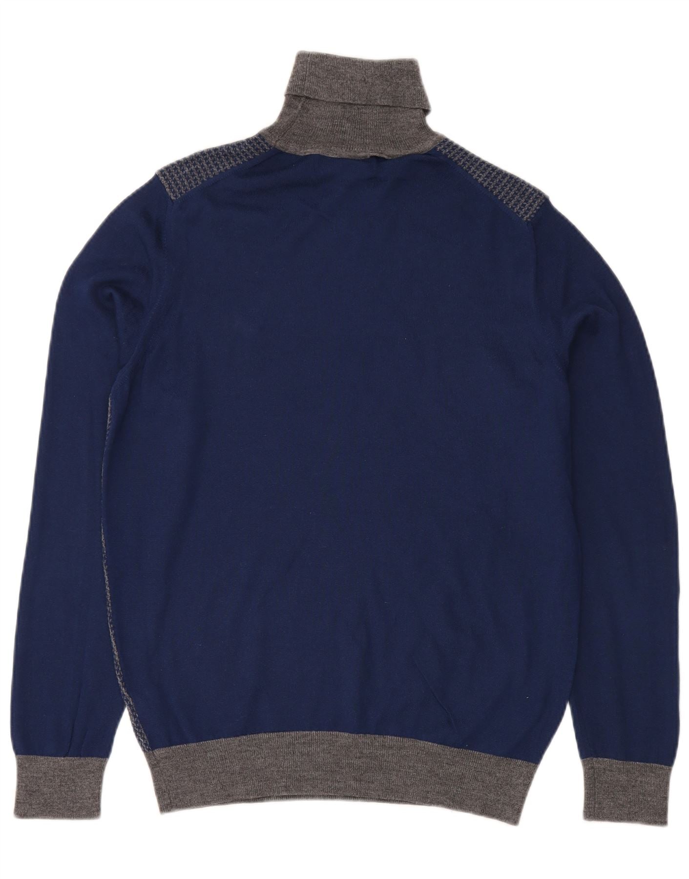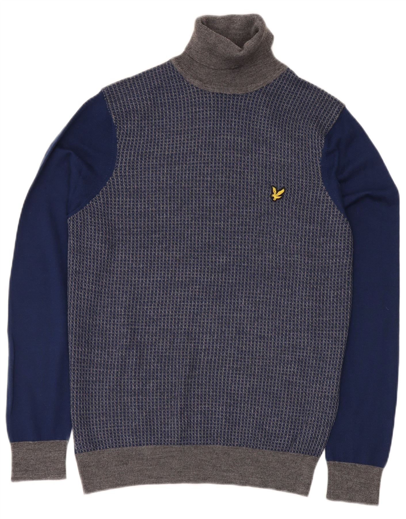 LYLE & SCOTT Maglione da uomo a collo alto con motivo a quadri blu medio in lana vergine