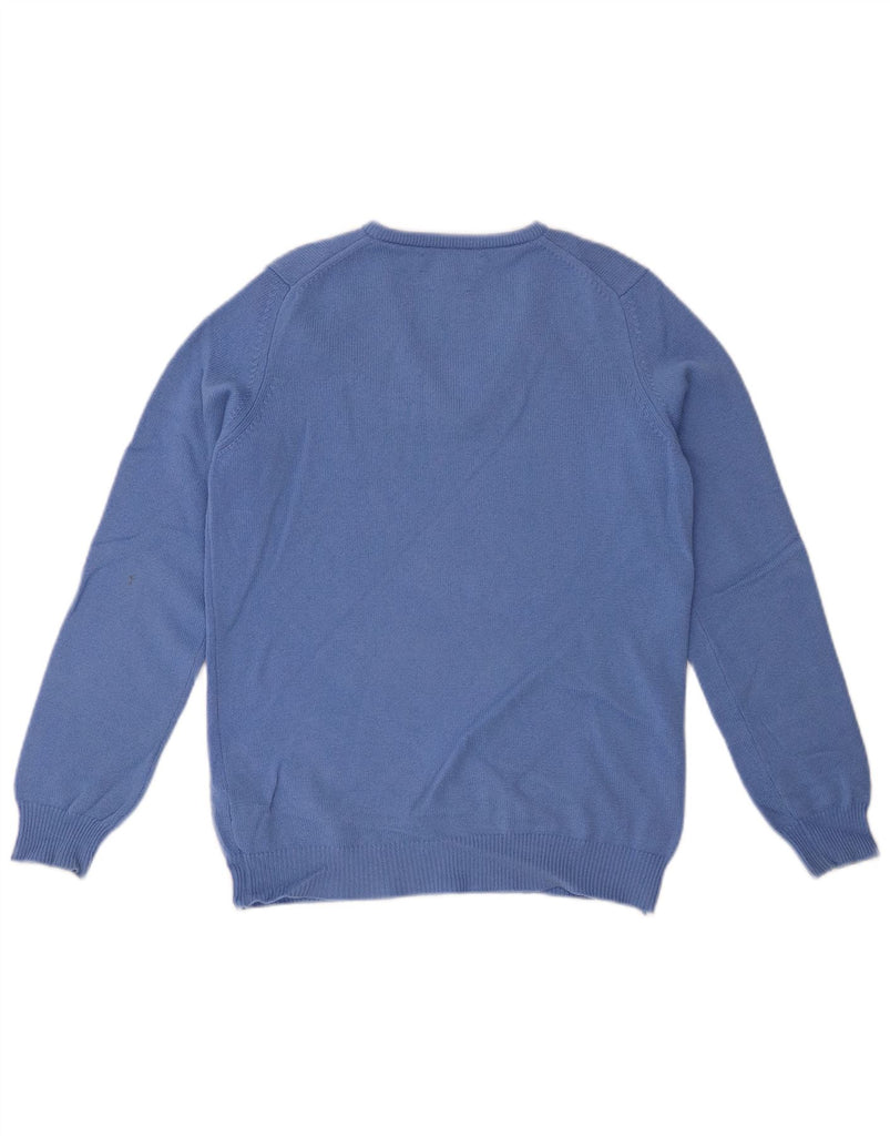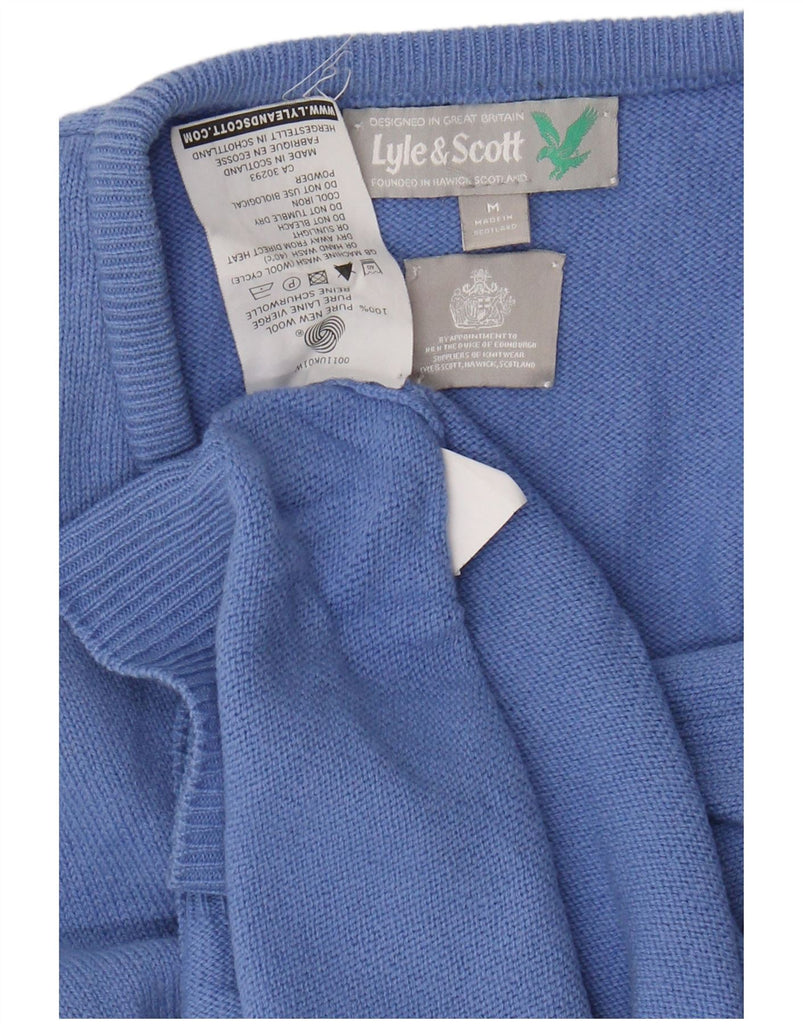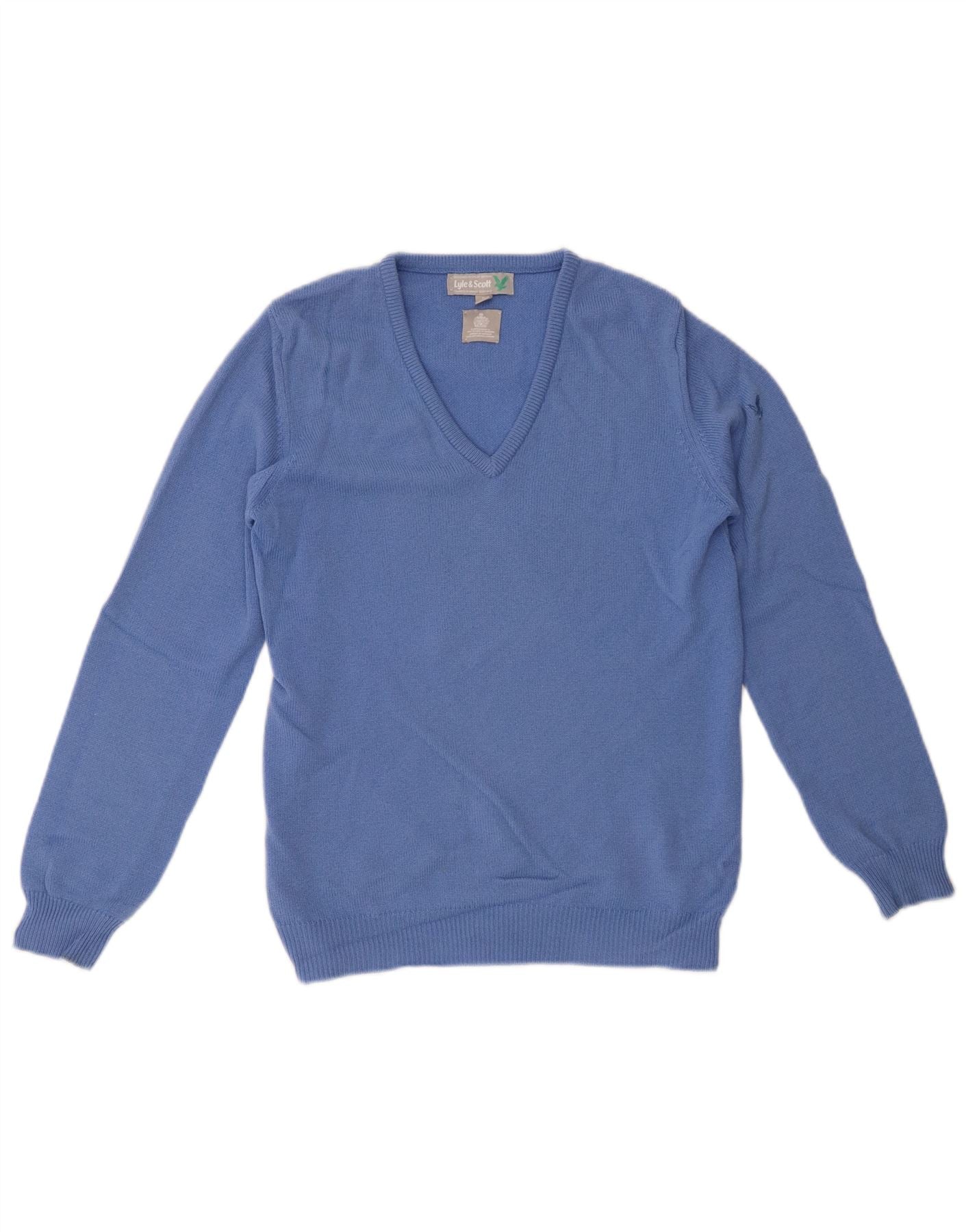 LYLE & SCOTT Womens V-Neck Jumper Sweater UK 14 Medium Blue Virgin Wool