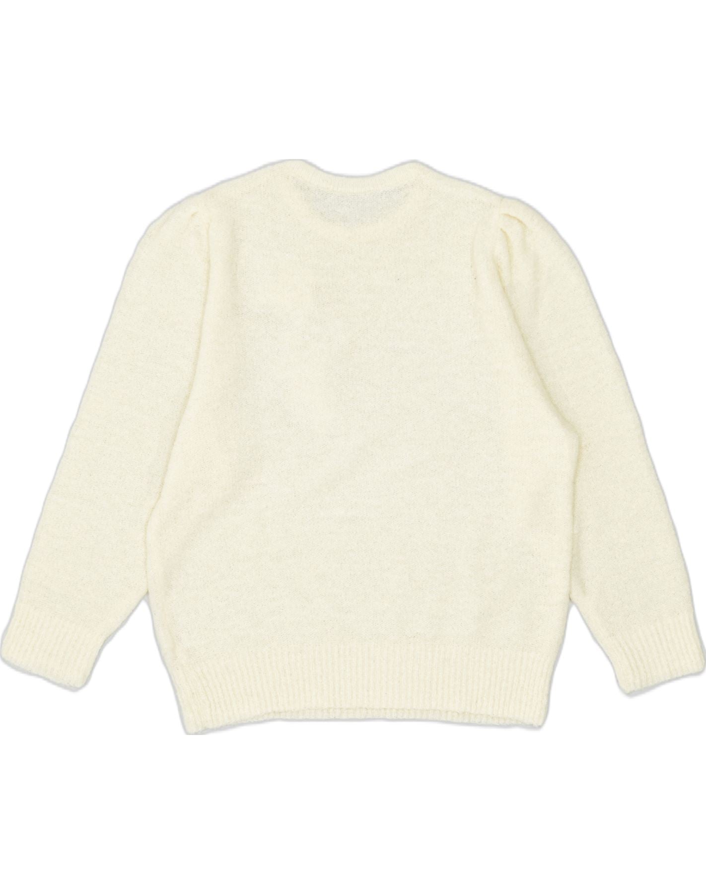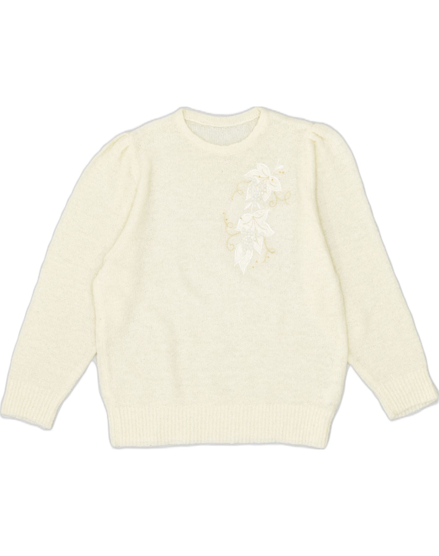 Maglione maglione girocollo da donna VINTAGE UK 20 2XL fiore bianco sporco