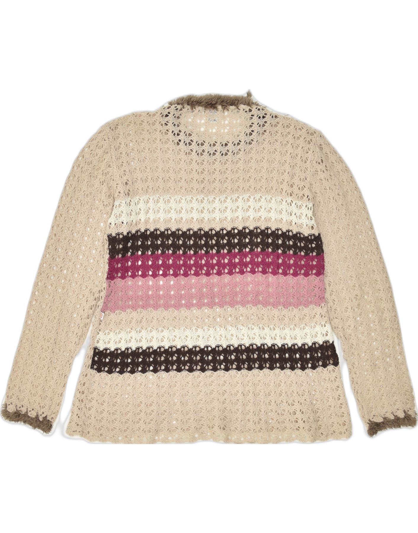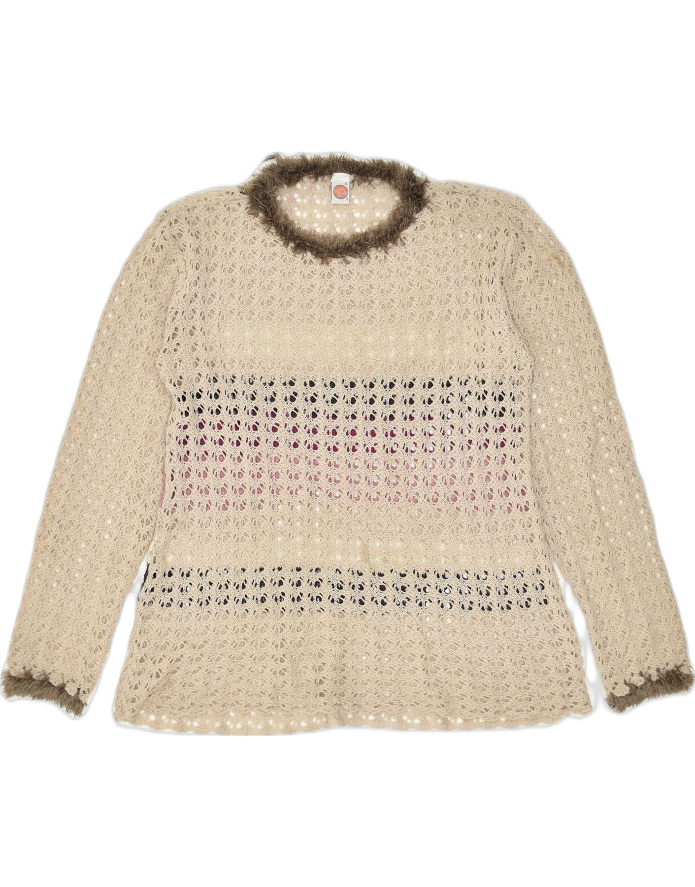 Maglione maglione girocollo trasparente da donna VINTAGE UK 20 2XL Nylon beige