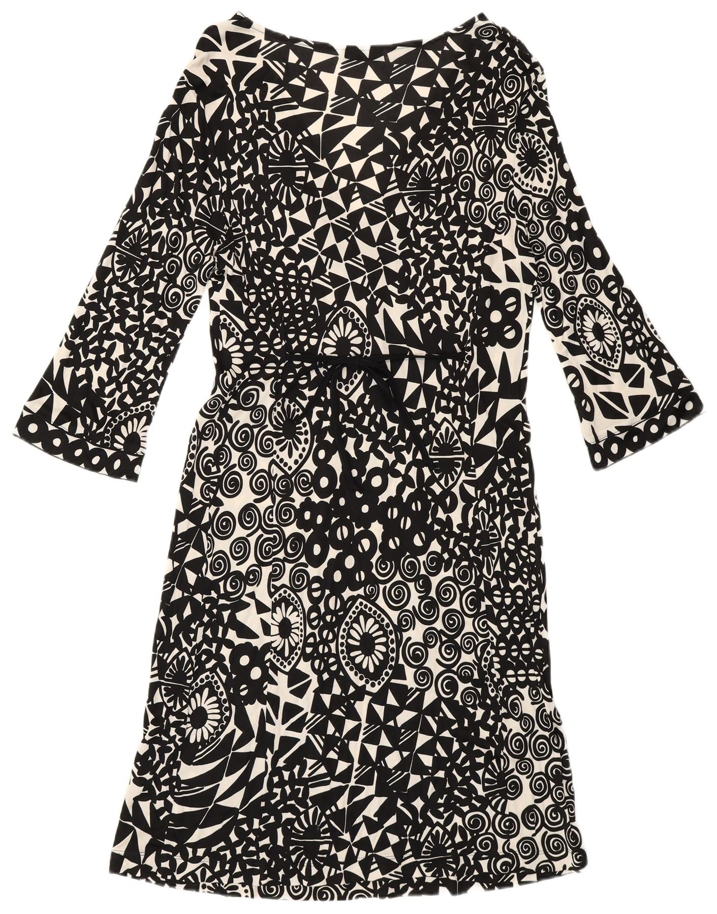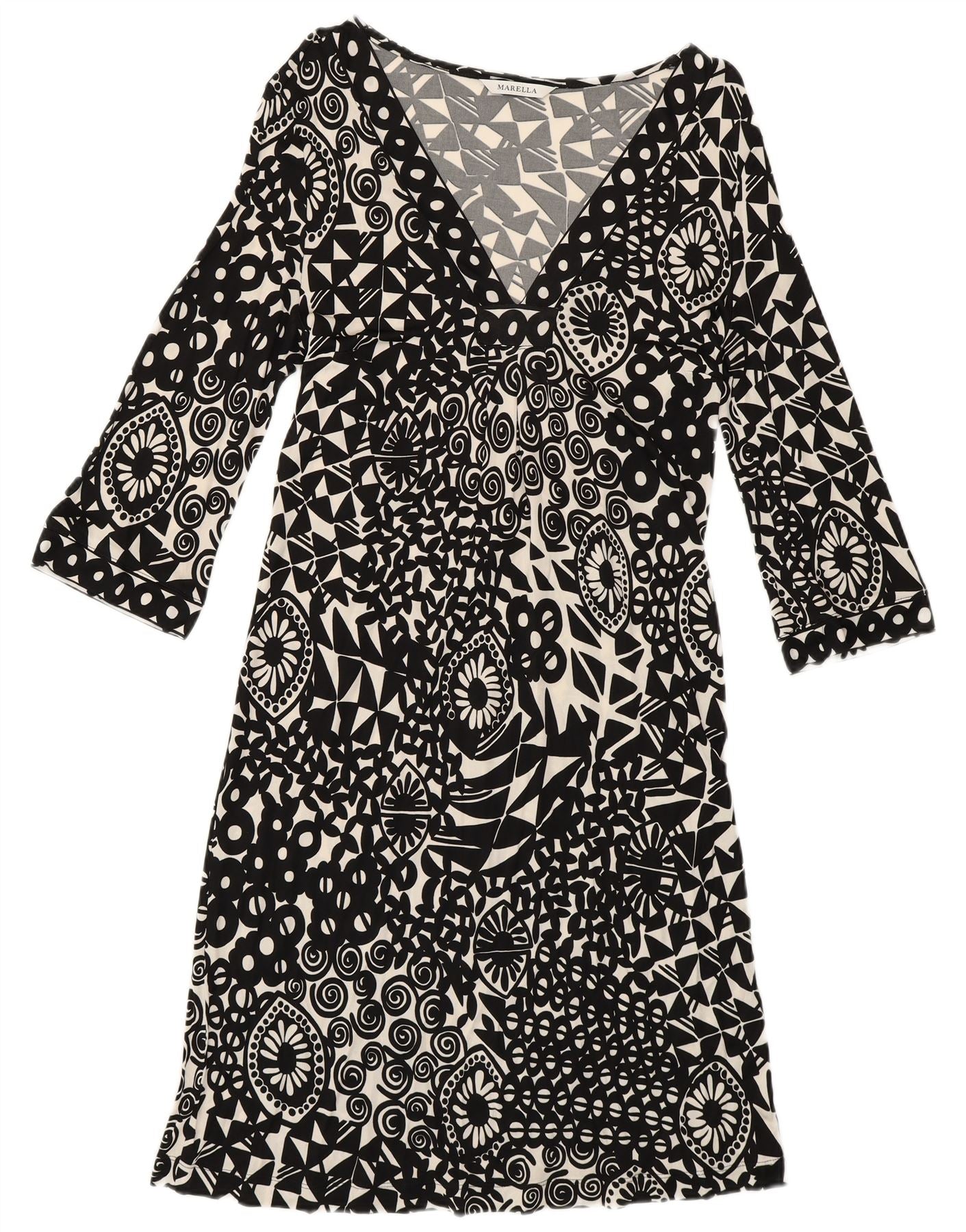 Abito da donna a trapezio con maniche a 3/4 Marella UK 12 Medio Nero geometrico