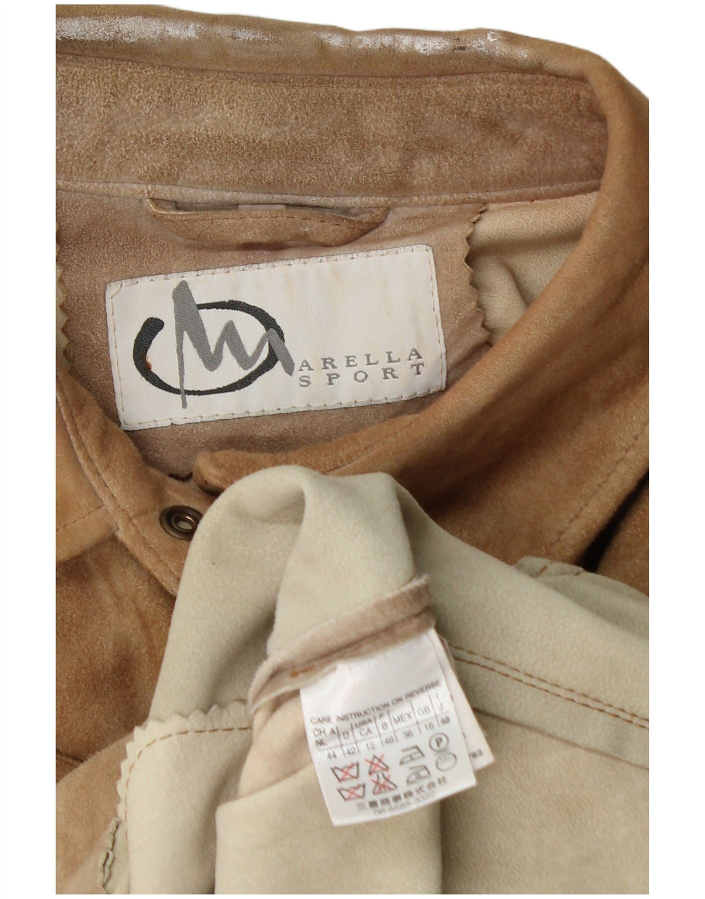 Camicia in pelle scamosciata da donna Marella UK 16 grande in pelle marrone