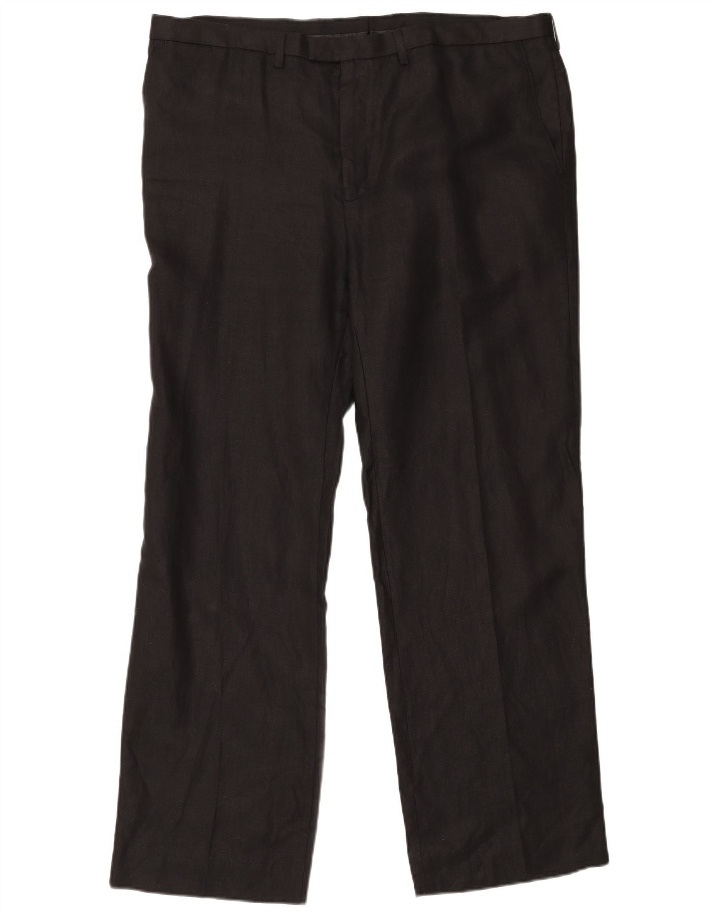 MARKS & SPENCER Pantaloni da abito dritti autografi da uomo W42 L33 Lino nero