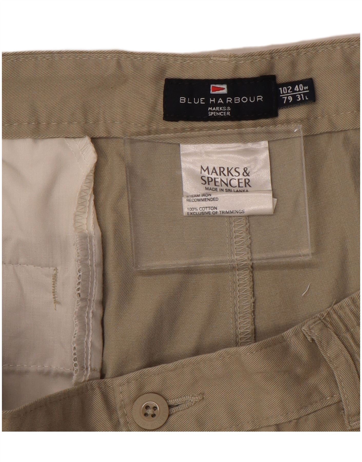 MARKS & SPENCER Pantaloni chino con pegging da uomo blu Harbour W40 L31 Marrone