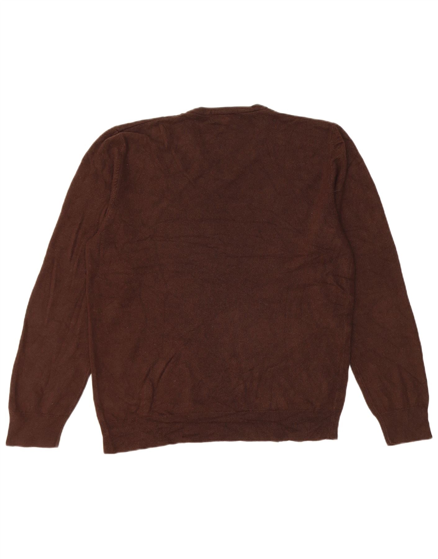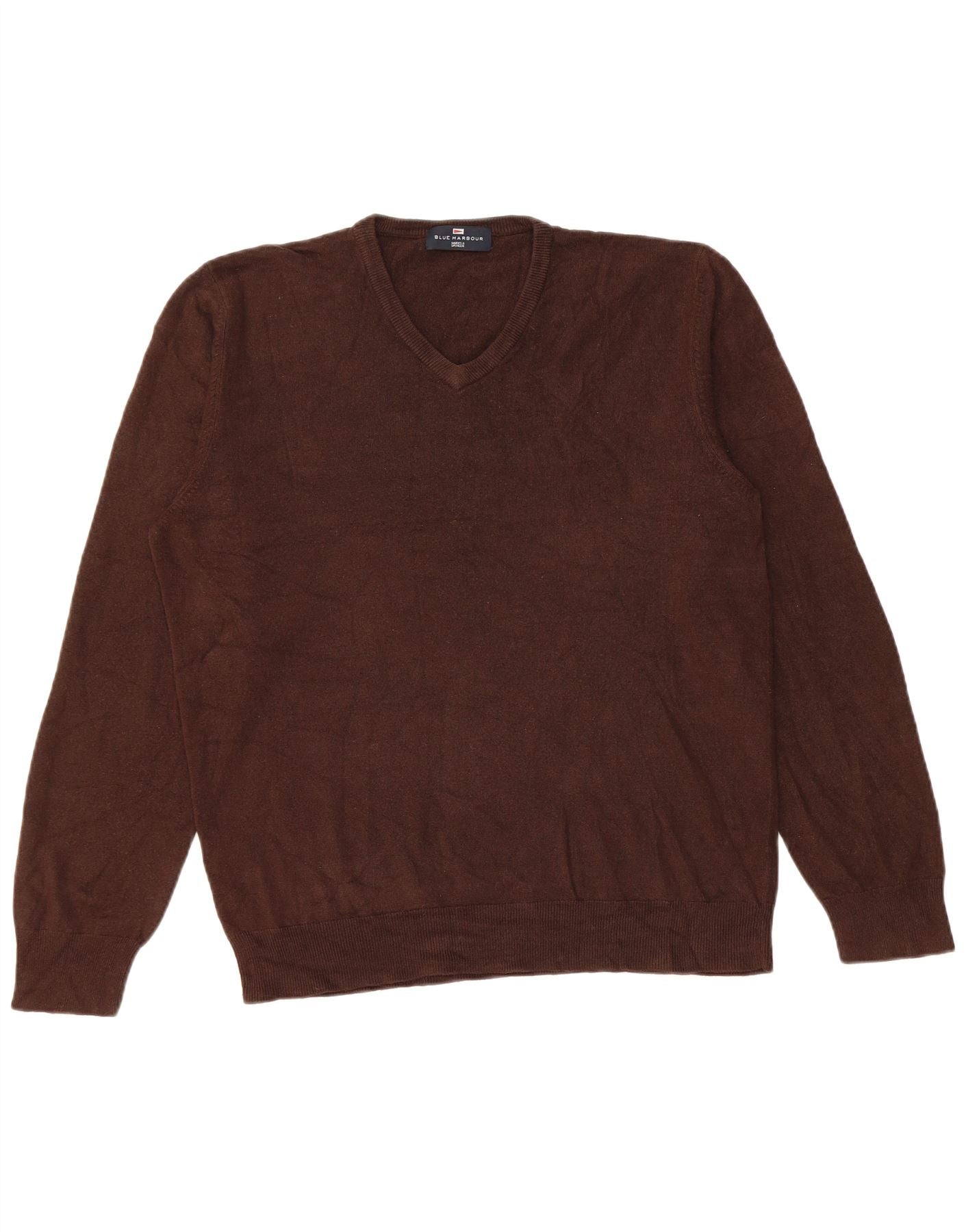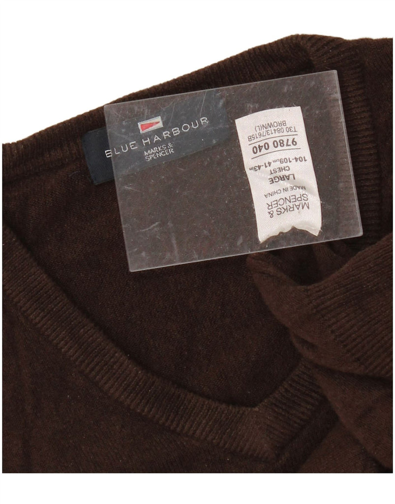 MARKS & SPENCER Mens Blue Harbour V-Neck Jumper Sweater Large Brown
