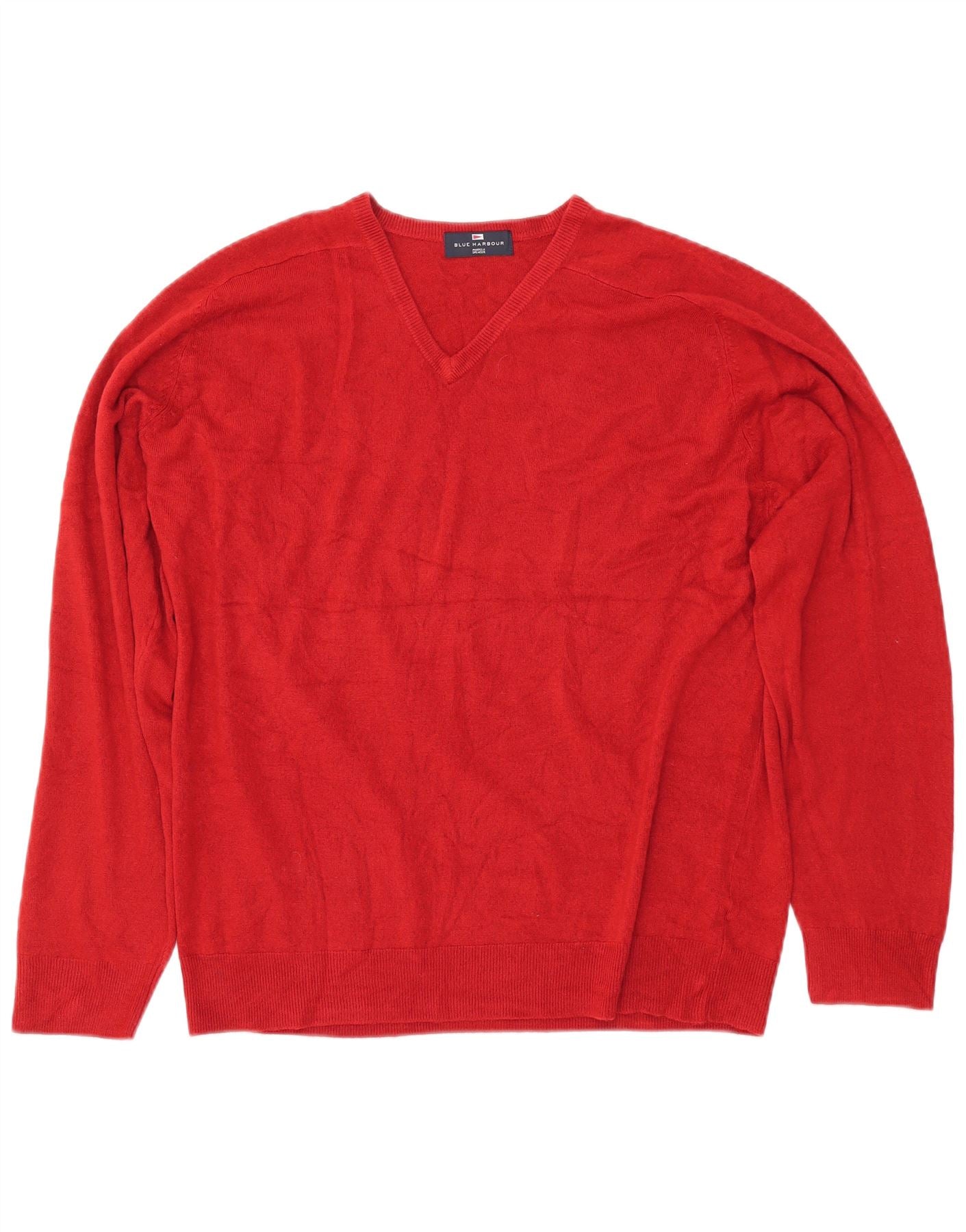 MARKS & SPENCER Maglione da uomo con scollo a V blu Harbour Grande acrilico rosso