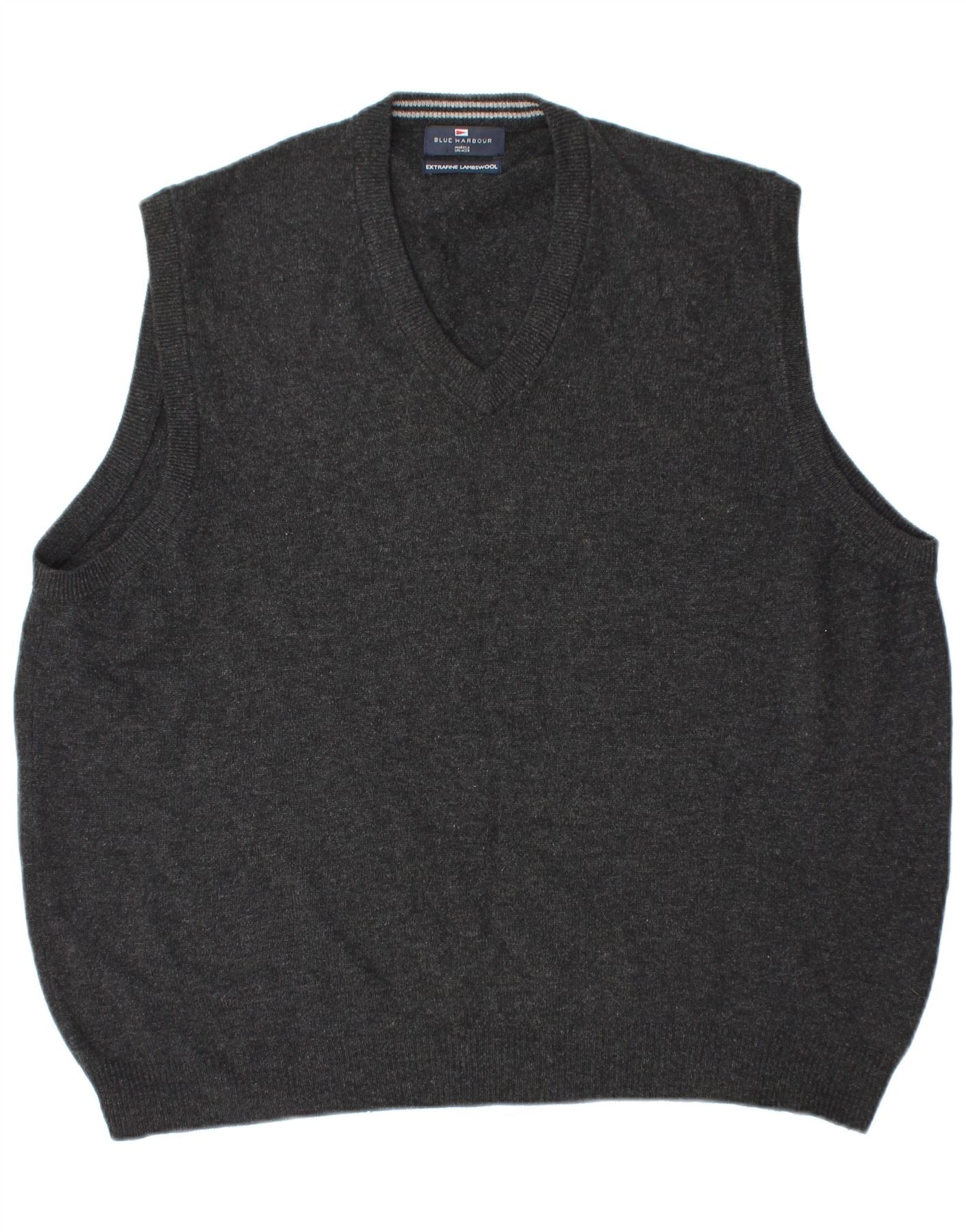 MARKS & SPENCER Canotta da uomo blu Harbour Vest grande lana d'agnello nera