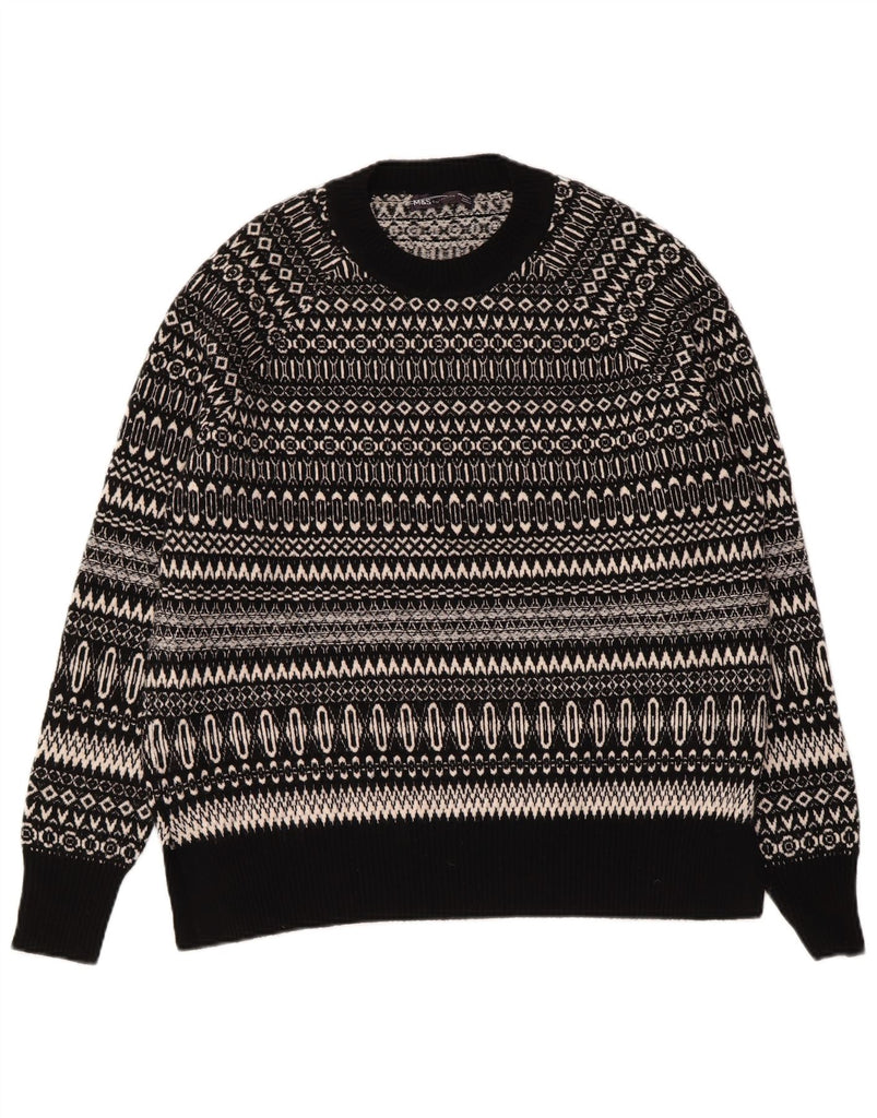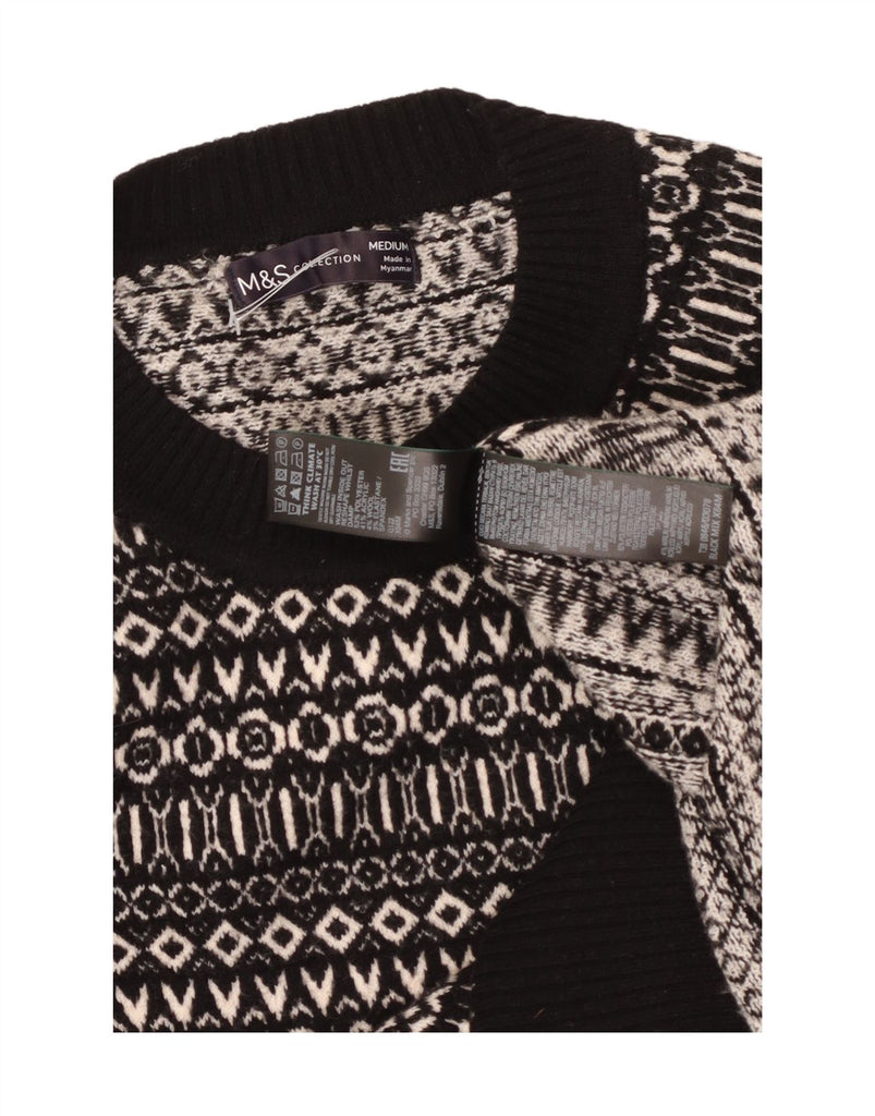 MARKS & SPENCER Maglione maglione girocollo da uomo medio nero Fair Isle