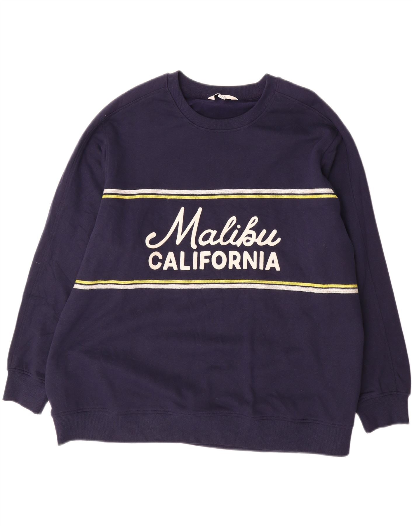 MARKS & SPENCER Felpa grafica Malibu da uomo Maglione XL Cotone blu navy