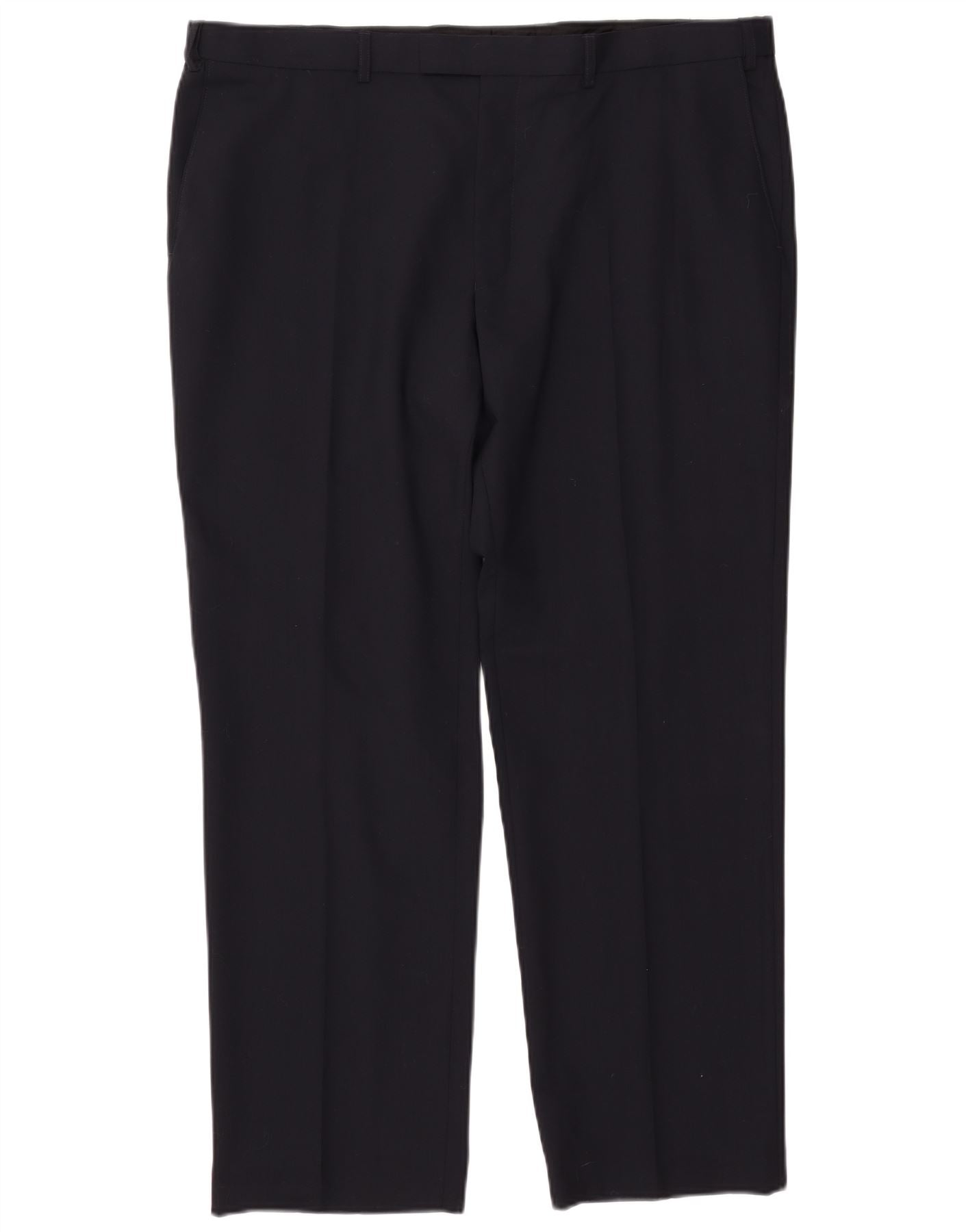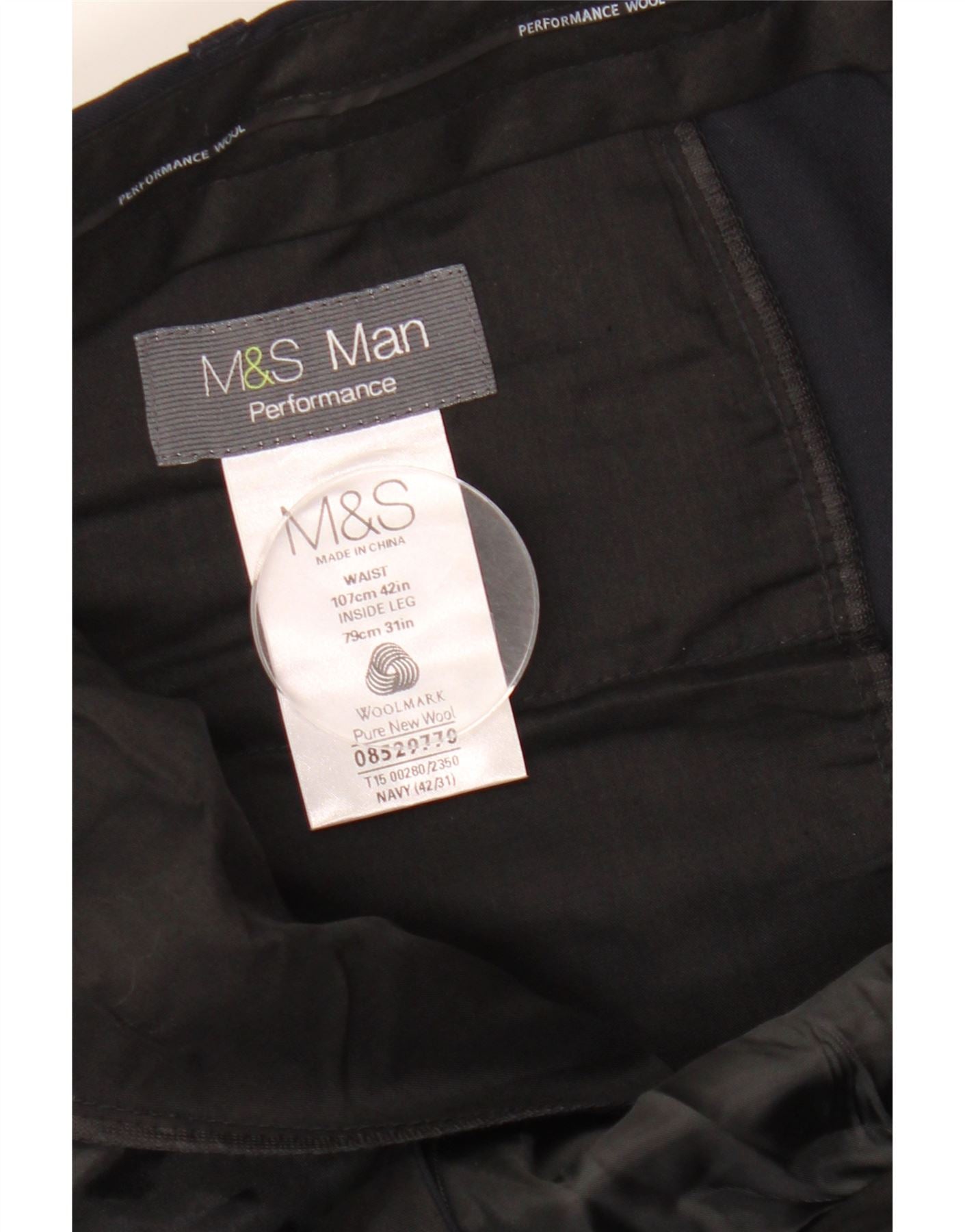 MARKS & SPENCER Pantaloni da abito dritti da prestazione da uomo W42 L31 Blu navy