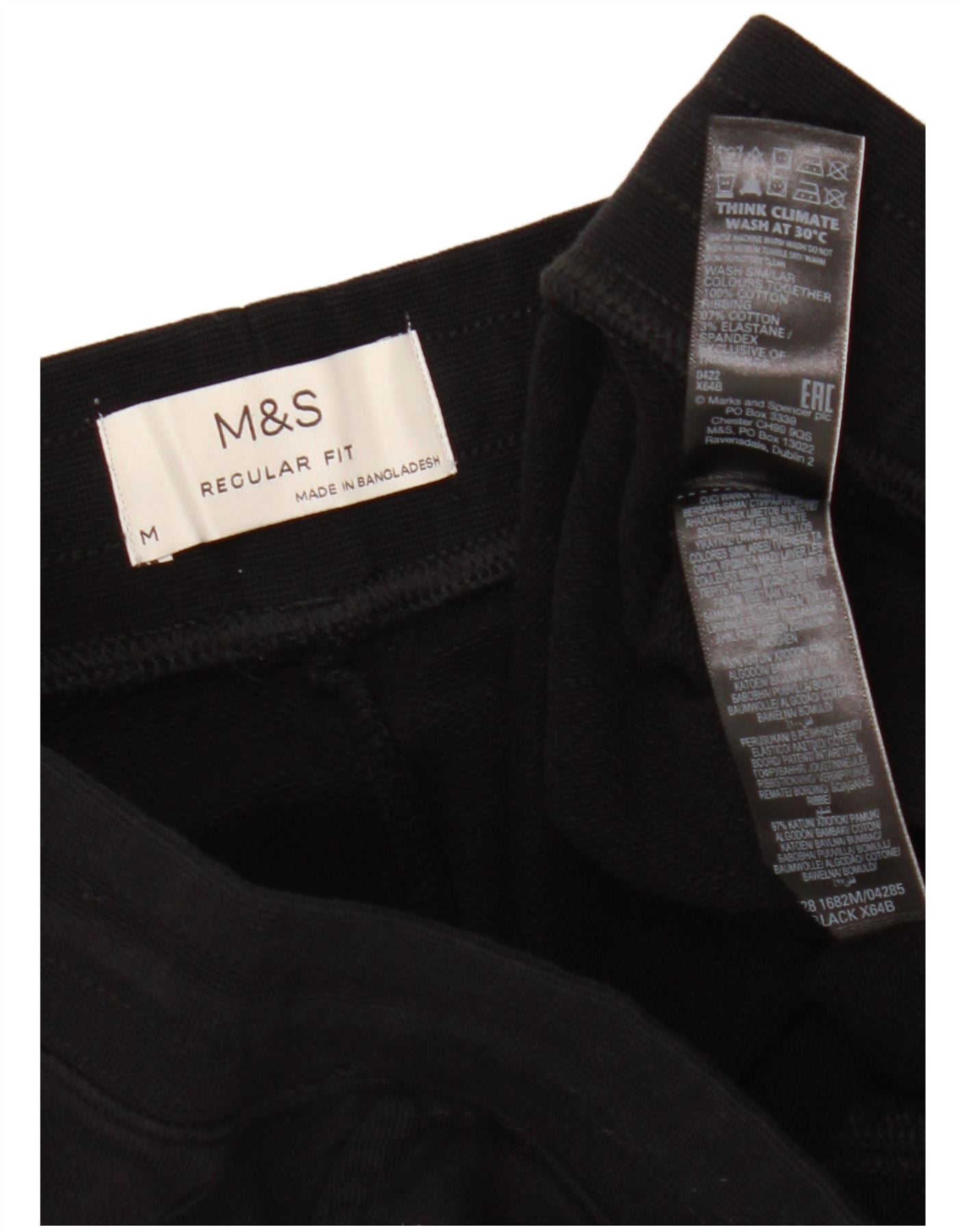 MARKS & SPENCER Pantaloncini sportivi vestibilità regolare da uomo in cotone nero medio
