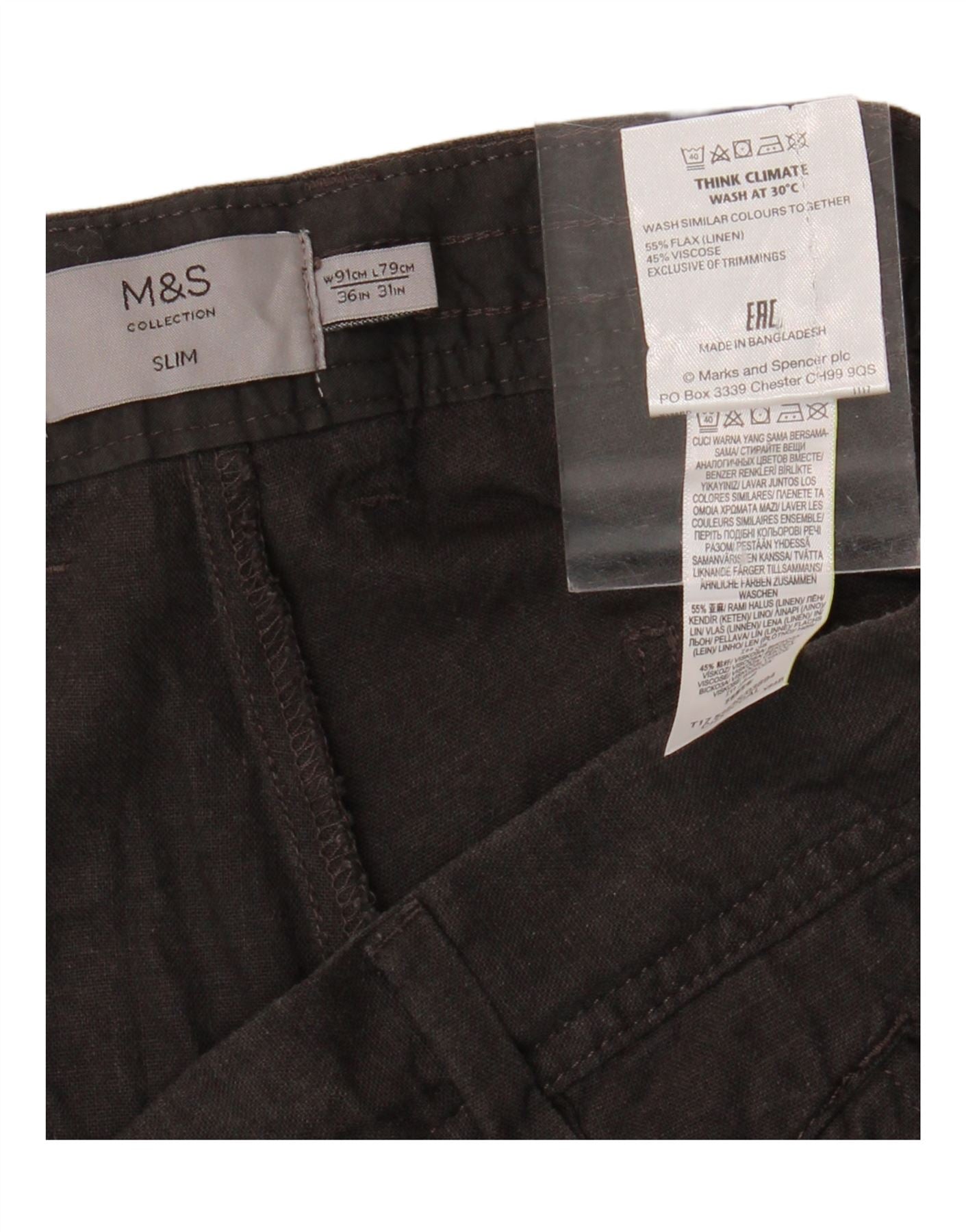 MARKS & SPENCER Pantaloni chino slim da uomo W36 L25 Lino grigio