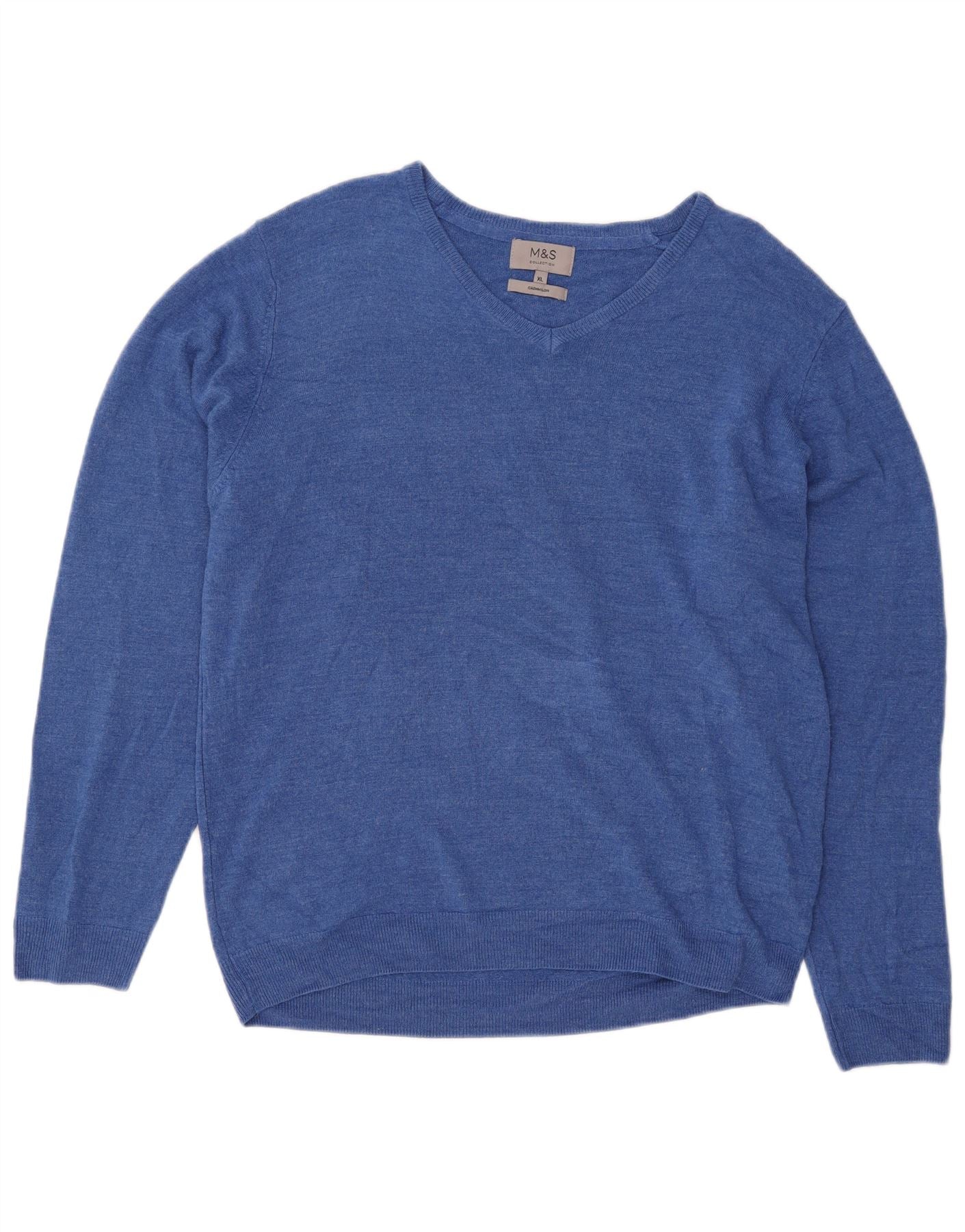 Maglione maglione con scollo a V da uomo Marks & Spencer XL blu acrilico