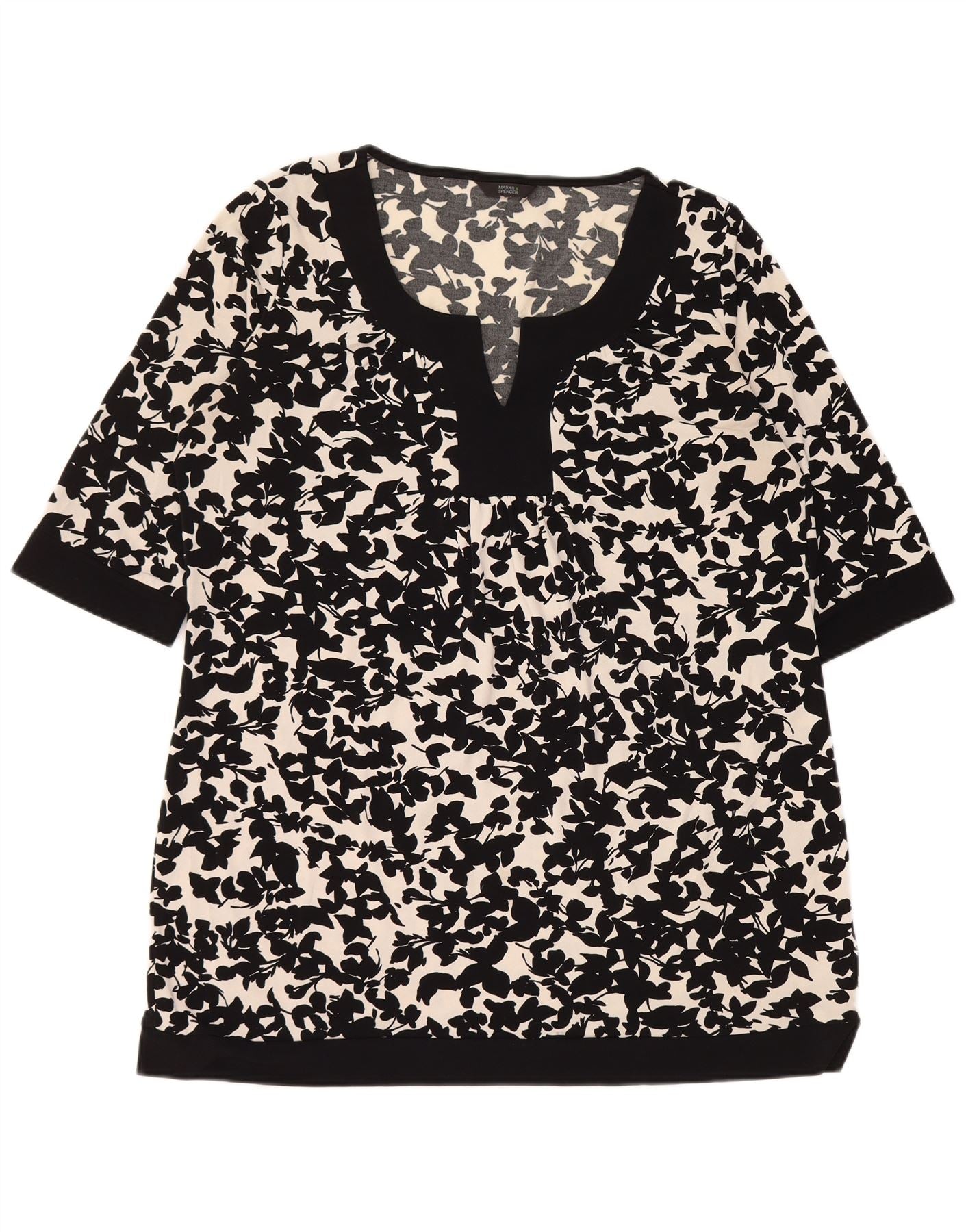 MARKS & SPENCER Camicetta da donna Top UK 16 Grande poliestere floreale nero