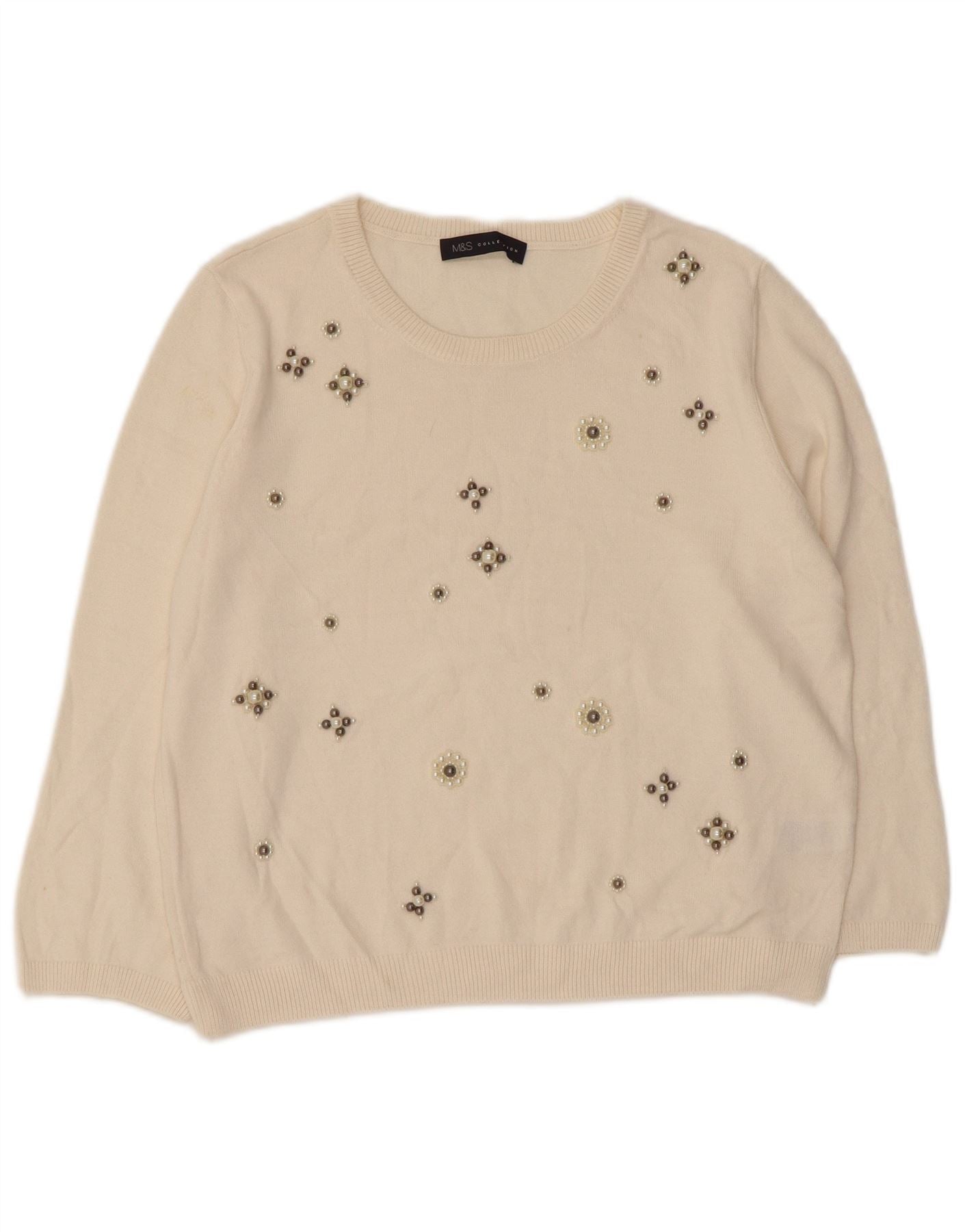 MARKS & SPENCER maglione da donna con scollo a barca UK 14 grande bianco sporco