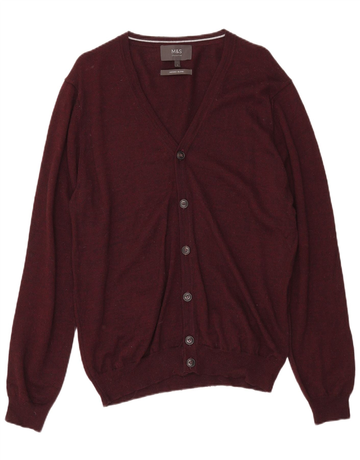 MARKS & SPENCER Maglione cardigan da donna UK 16 Grande lana screziata bordeaux