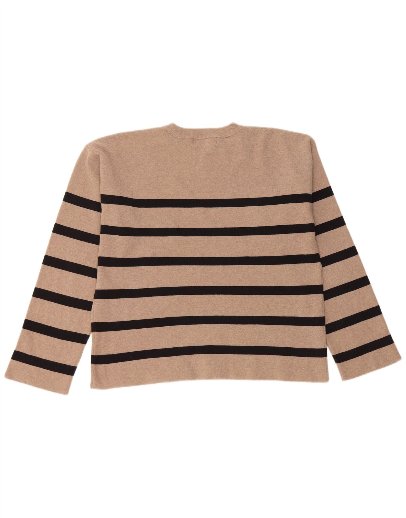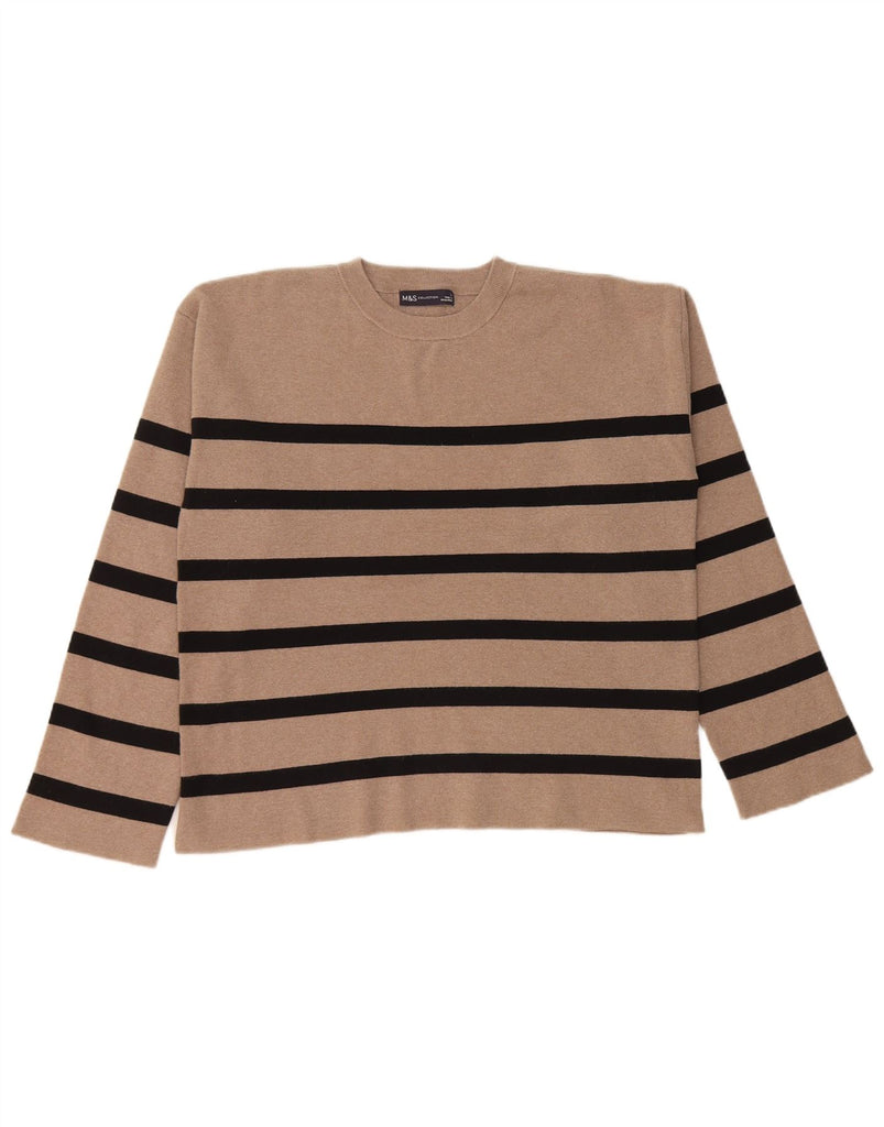 MARKS & SPENCER Maglione maglione girocollo da donna UK 16 Grandi righe beige