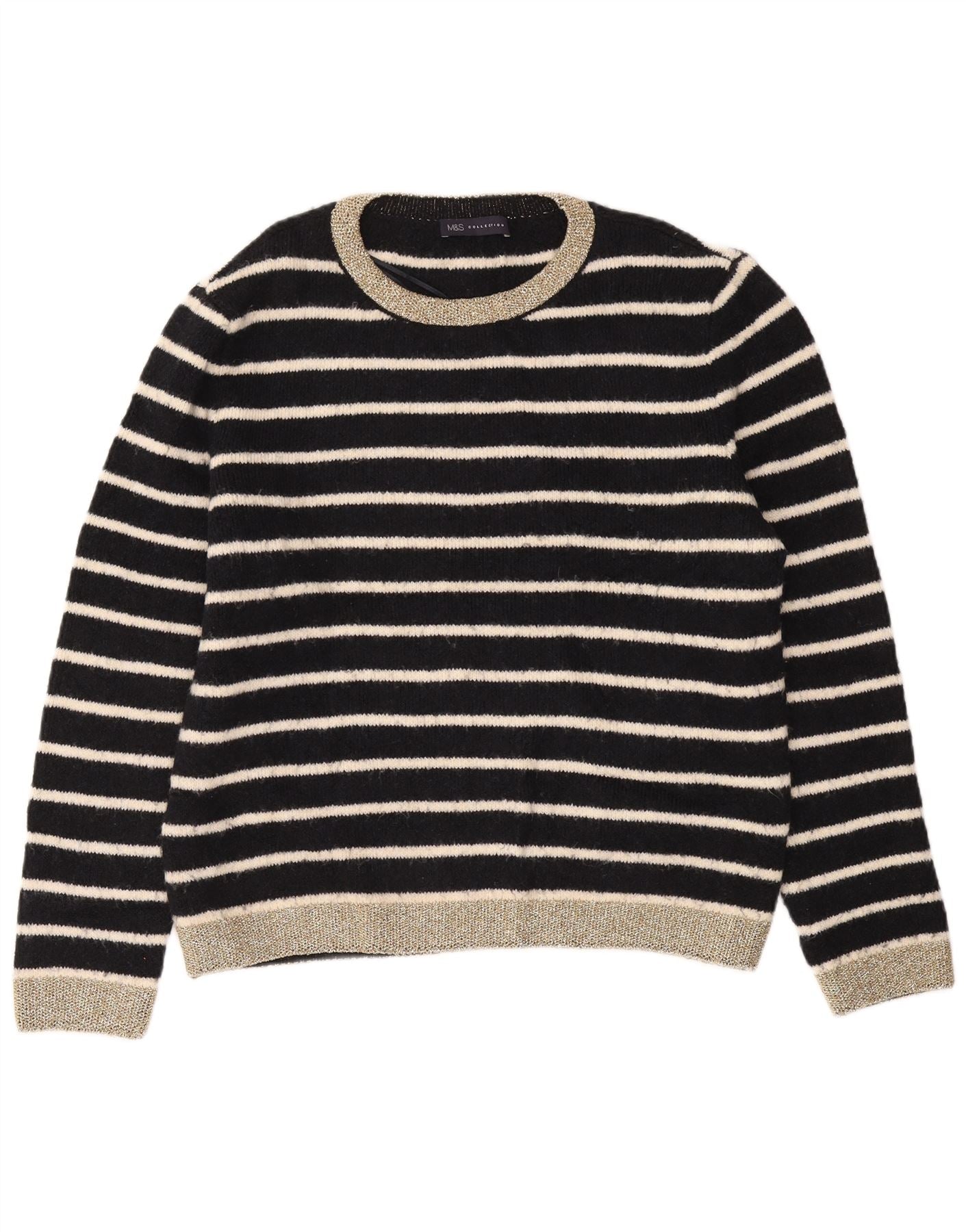 MARKS & SPENCER Maglione maglione girocollo da donna UK 16 Grandi righe nere