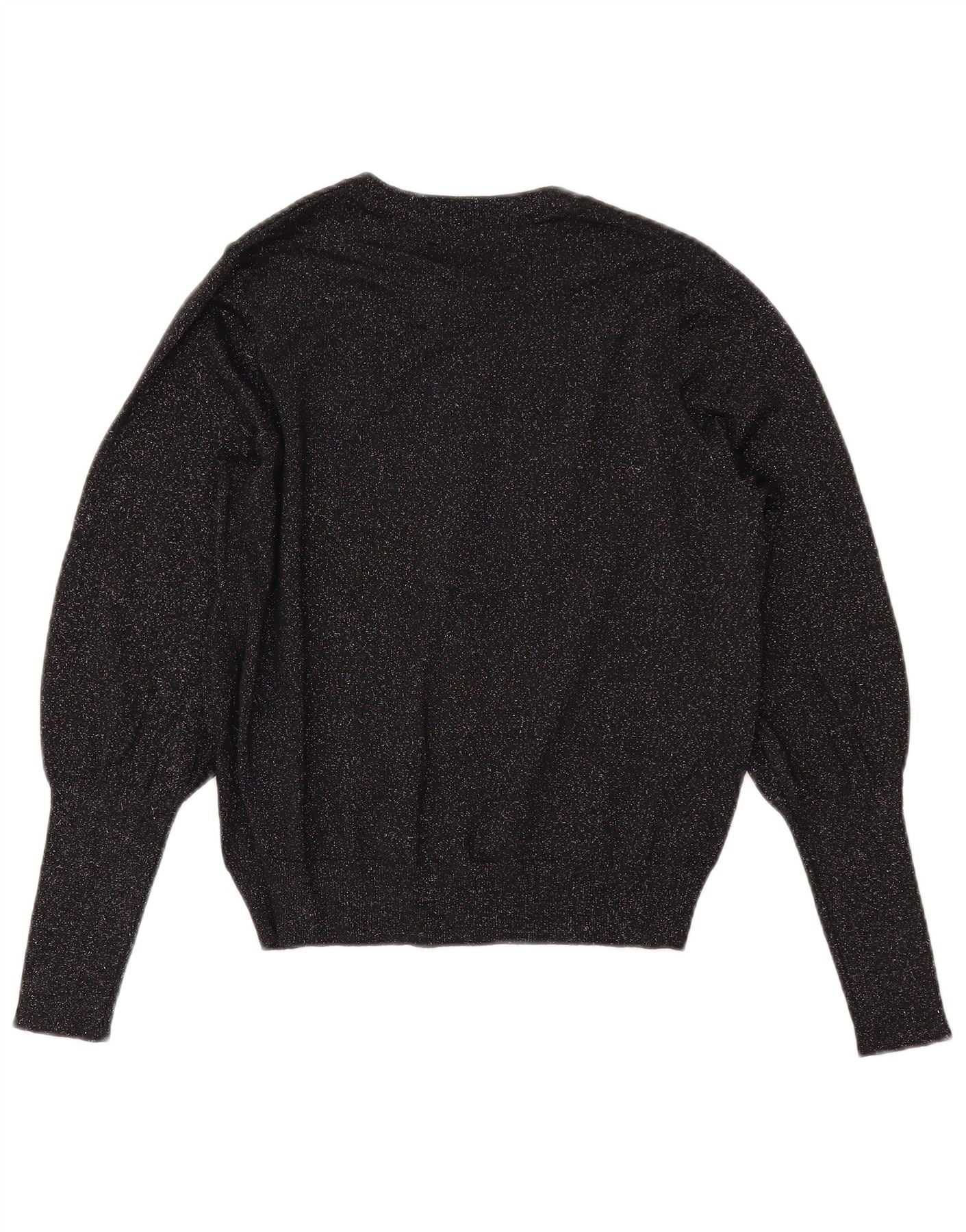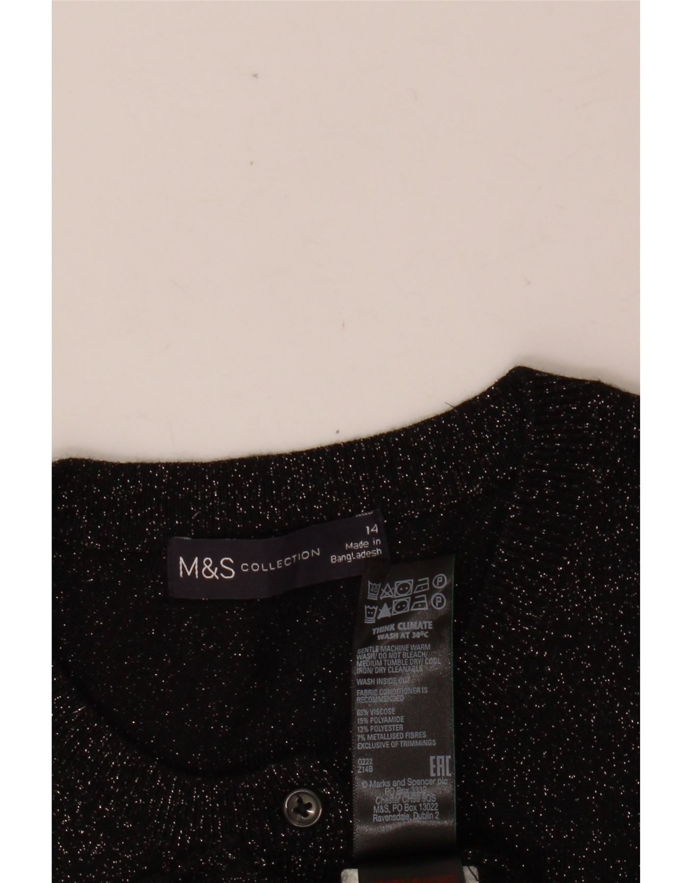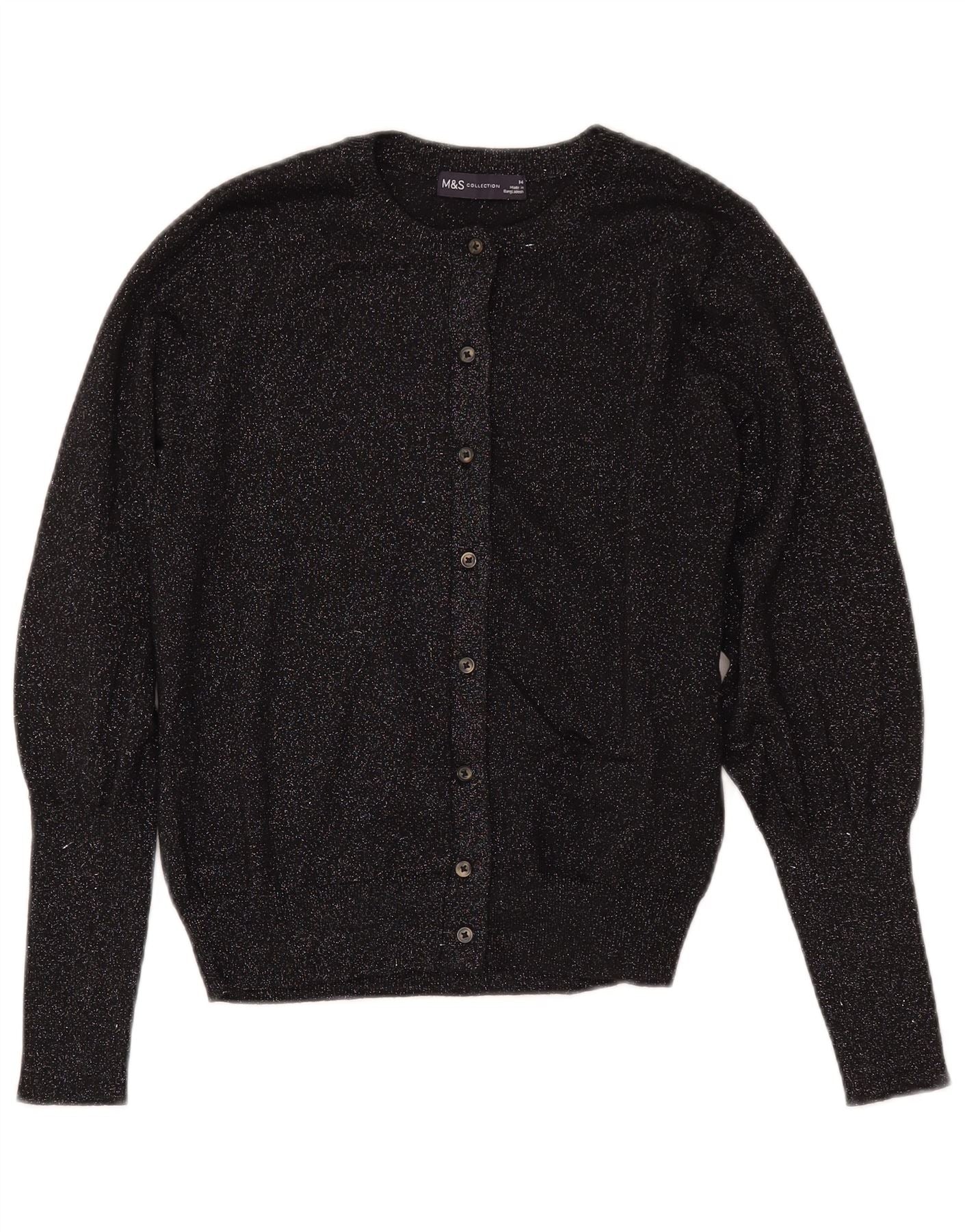 MARKS & SPENCER Maglione cardigan corto da donna UK 14 medio nero screziato