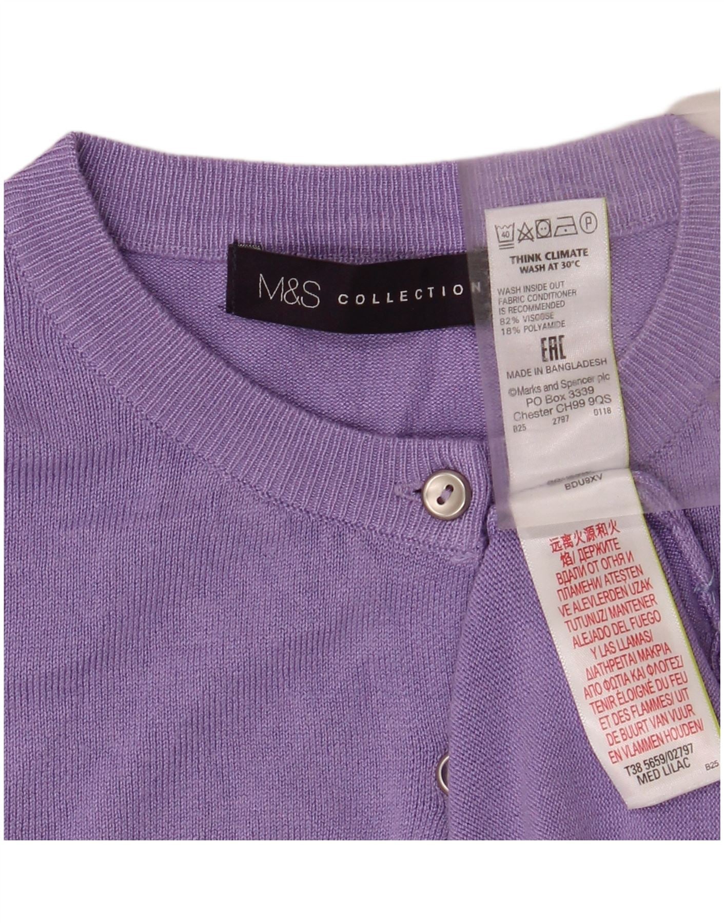 MARKS & SPENCER Maglione cardigan corto da donna UK 8 Piccolo viscosa viola