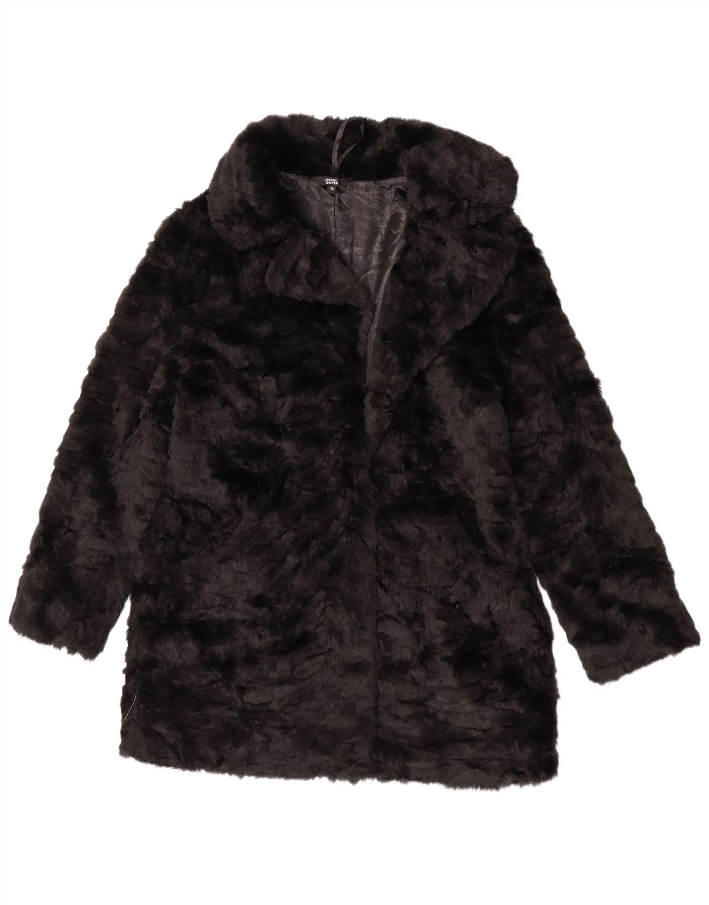 Giacca in pelliccia sintetica da donna Marks & Spencer UK 12 modacrile nero medio