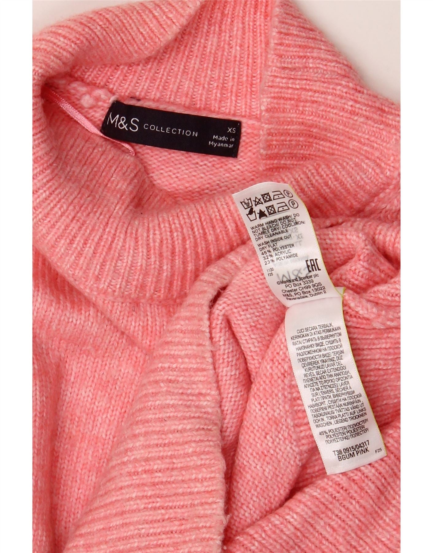 MARKS & SPENCER Maglione oversize da donna con collo dolcevita UK 6 XS Rosa