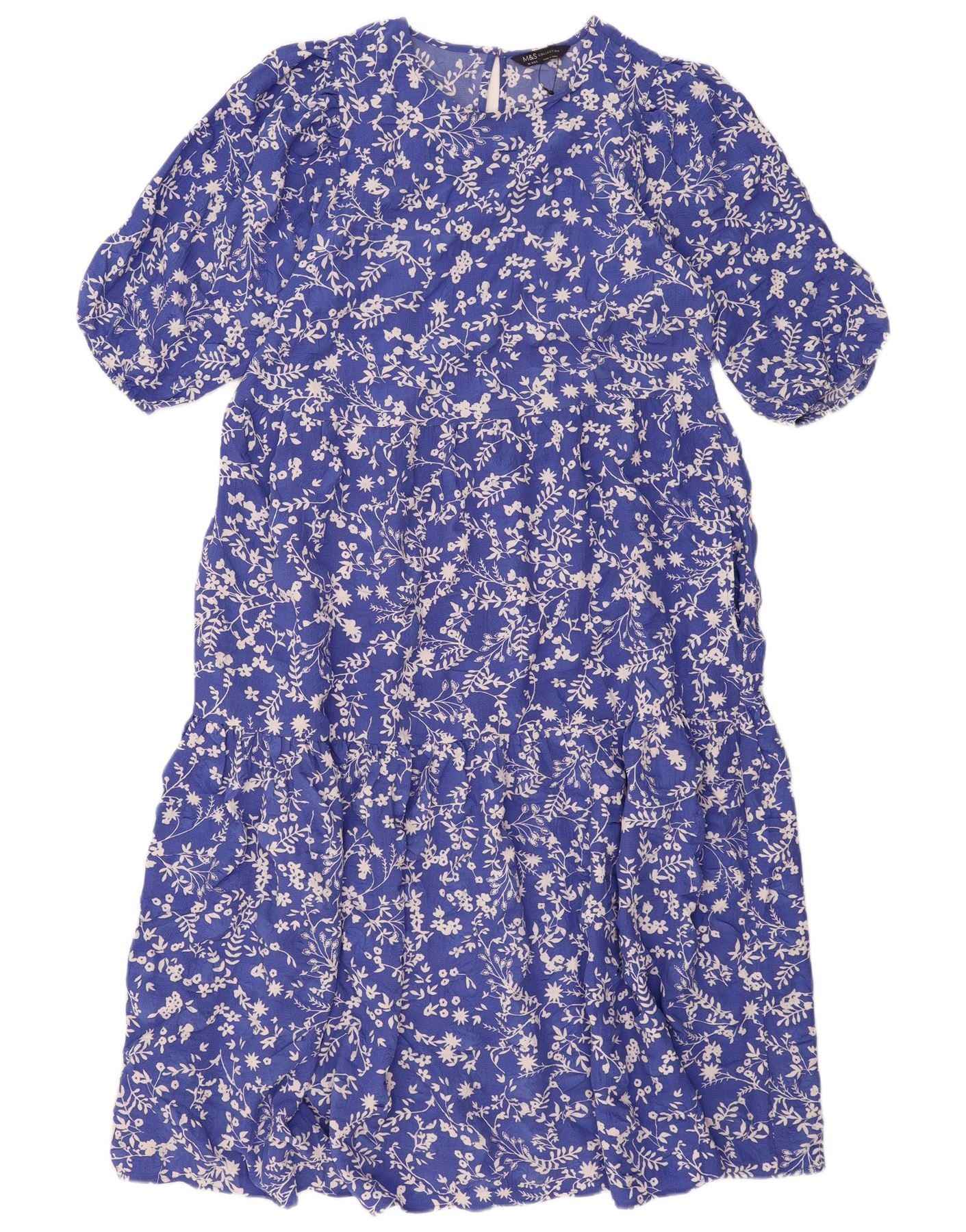 MARKS & SPENCER Abito lungo regolare da donna UK 16 Grande floreale blu