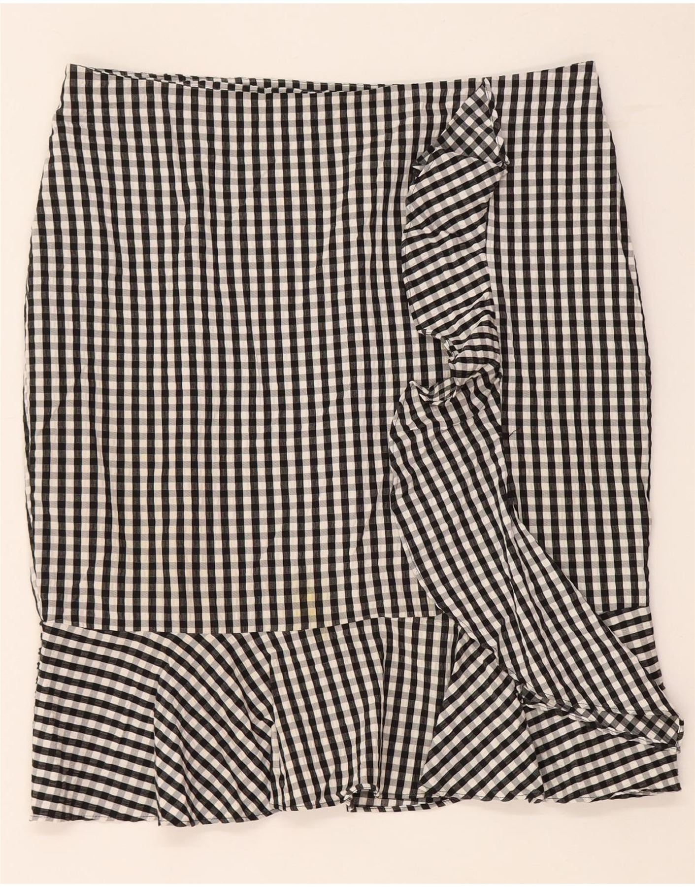 Gonna con volant da donna Marks & Spencer UK 16 Large W34 viscosa a quadretti nera