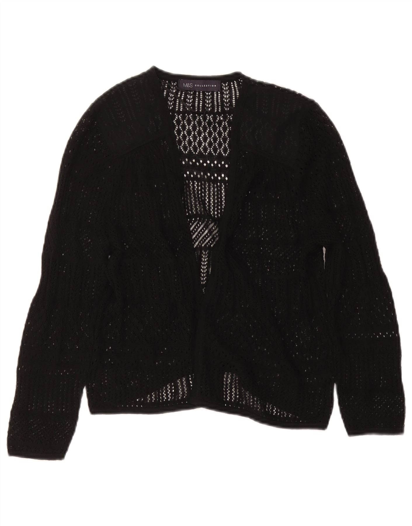 MARKS & SPENCER Maglione cardigan trasparente da donna UK 8 piccolo nero