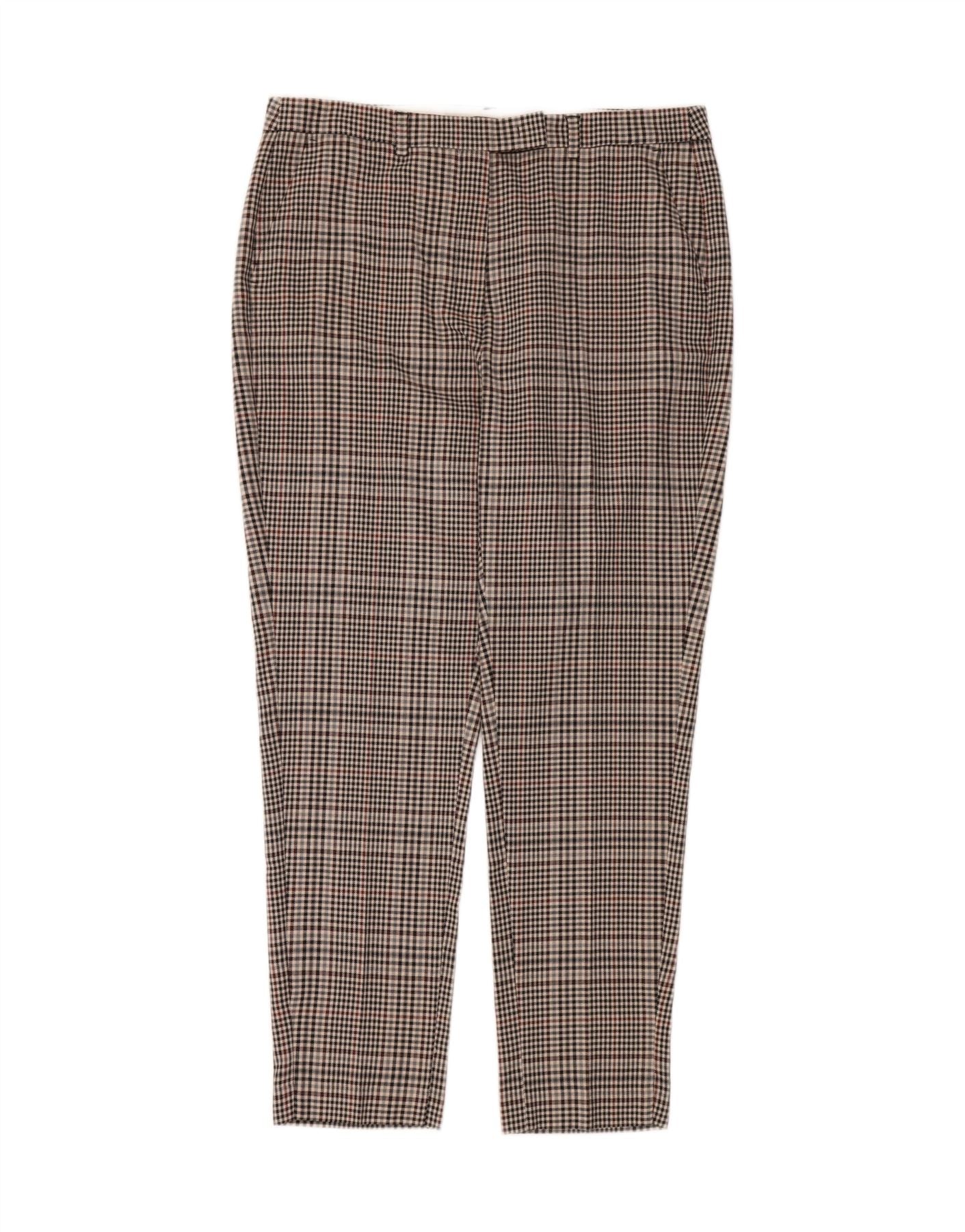 Pantaloni chino slim da donna Marks & Spencer UK 16 Large W34 L30 a quadri marroni
