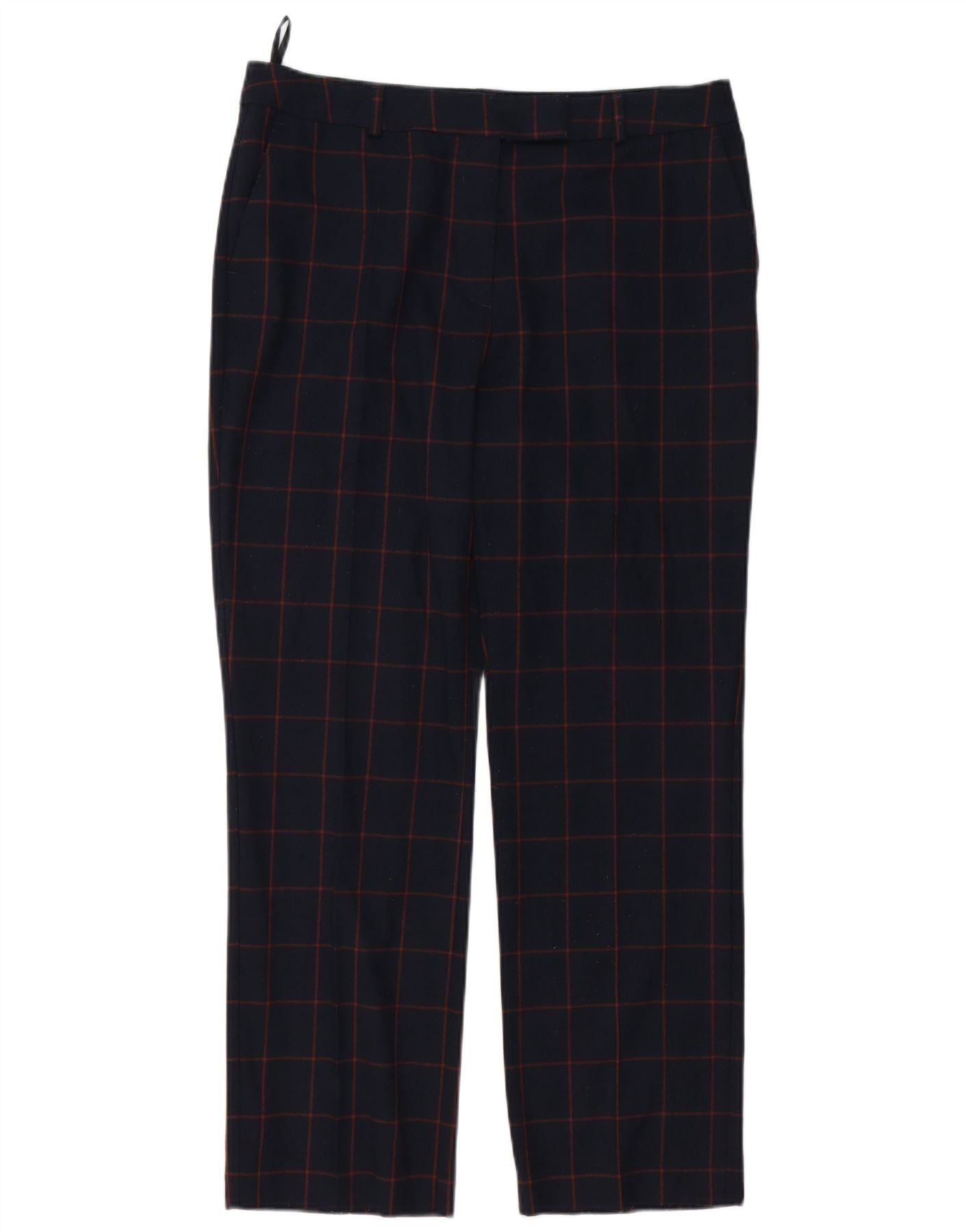 Pantaloni da abito da donna MARKS & SPENCER UK 14 Large W34 L28 Blu navy a quadri