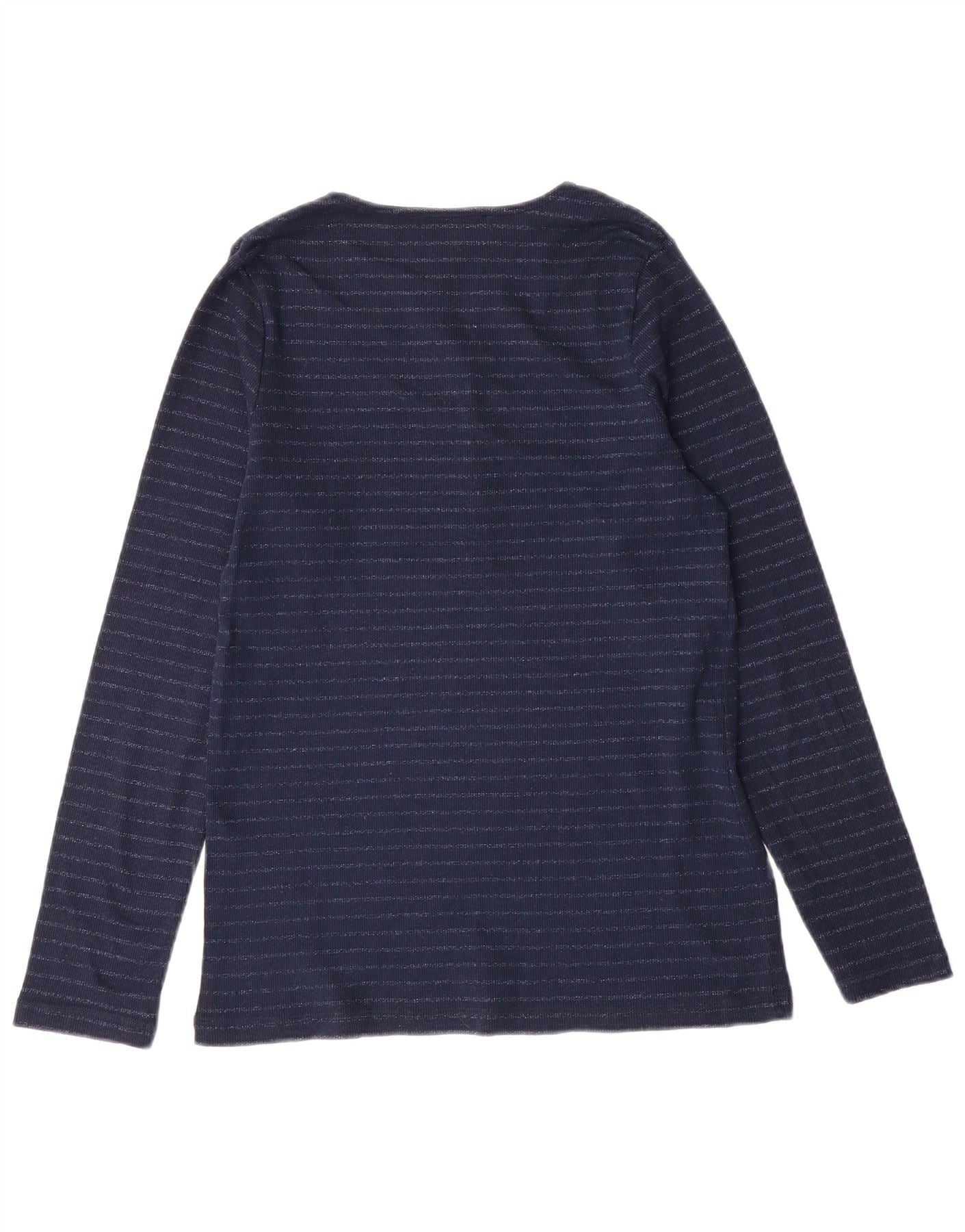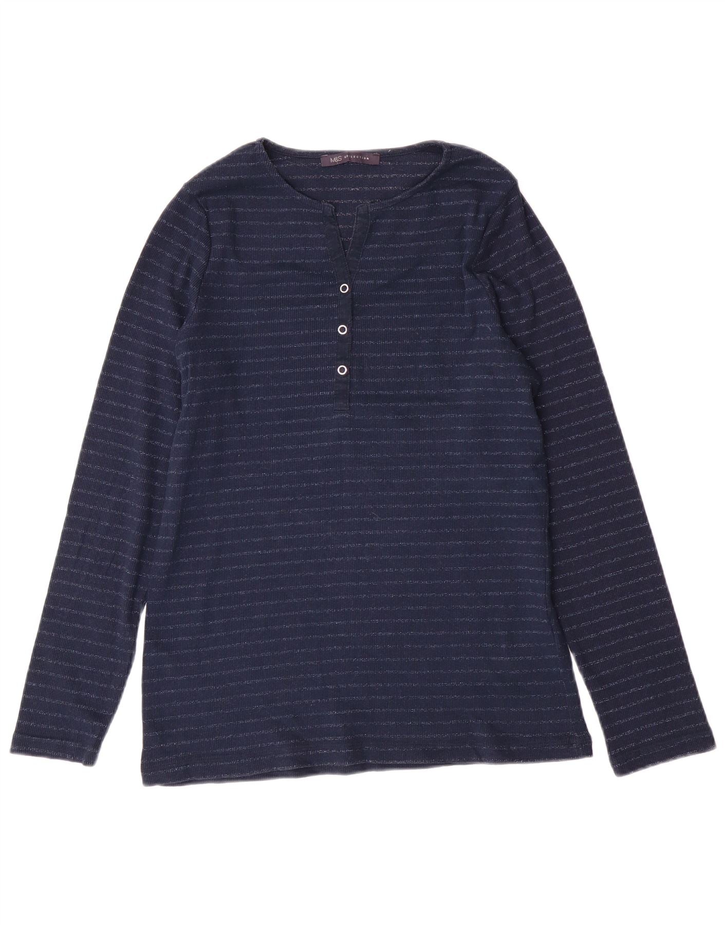 MARKS & SPENCER Top da donna a maniche lunghe UK 14 Large Navy Blue Striped