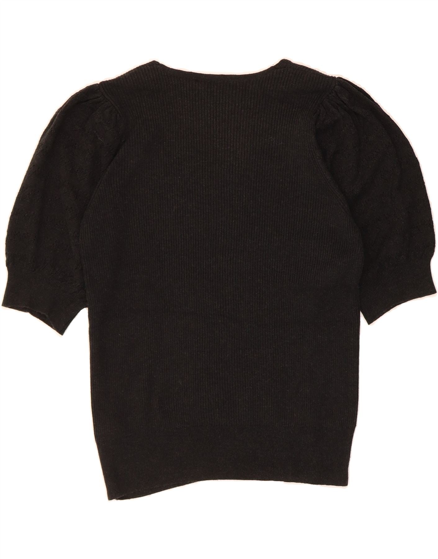- AI Description: This Marks & Spencer women's T-shirt top is a classic wardrobe staple. In pre-owned excellent condition, this black knit top features a flattering V-neckline and short sleeves. The regular fit ensures comfort, while the pullover closure makes it easy to wear. While the listing specifies a button accent, please note that this detail has low confidence. Perfect for everyday wear, this T-shirt offers timeless style and versatility.