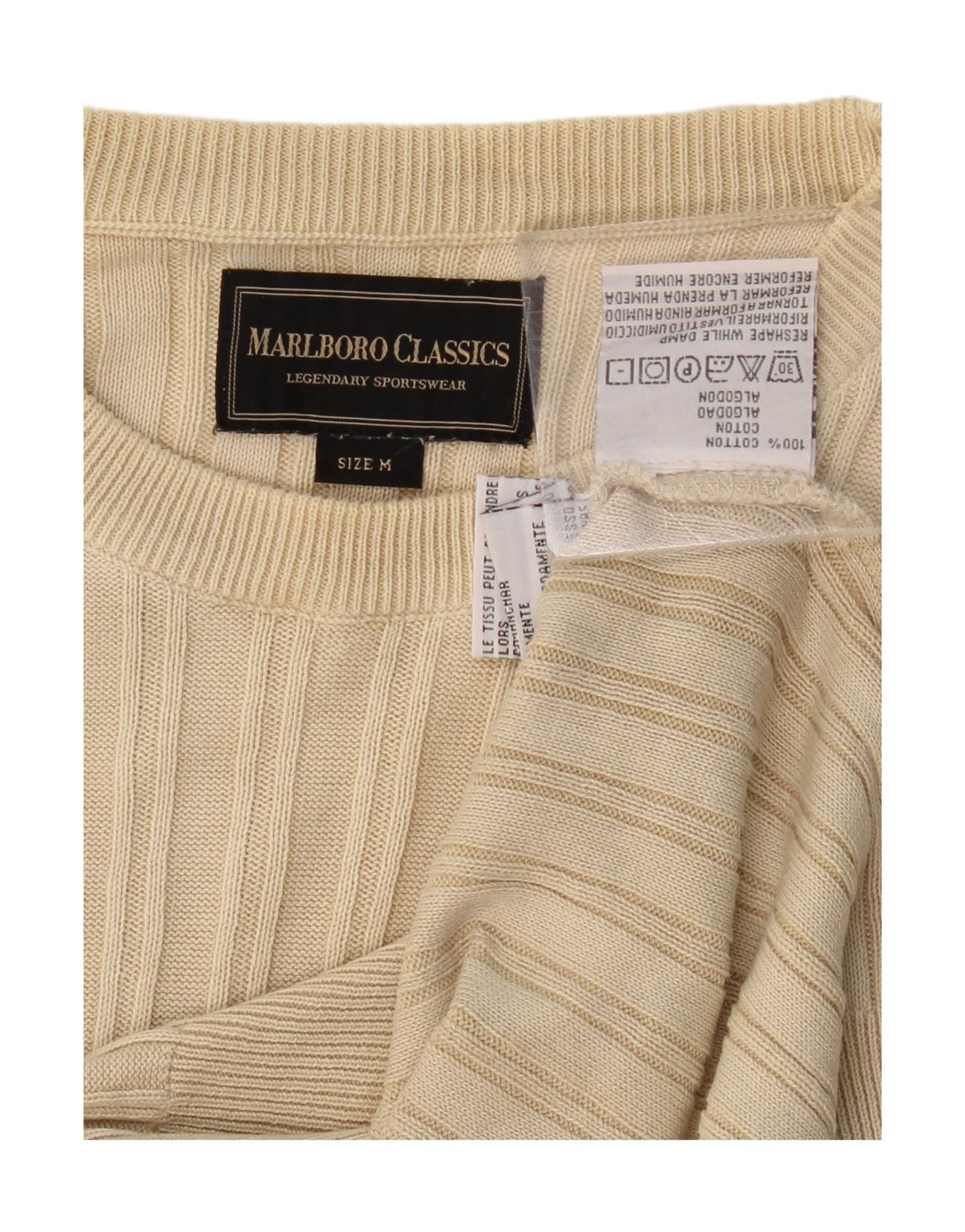 MARLBORO CLASSICS Mens Crew Neck Jumper Sweater Medium Beige Cotton