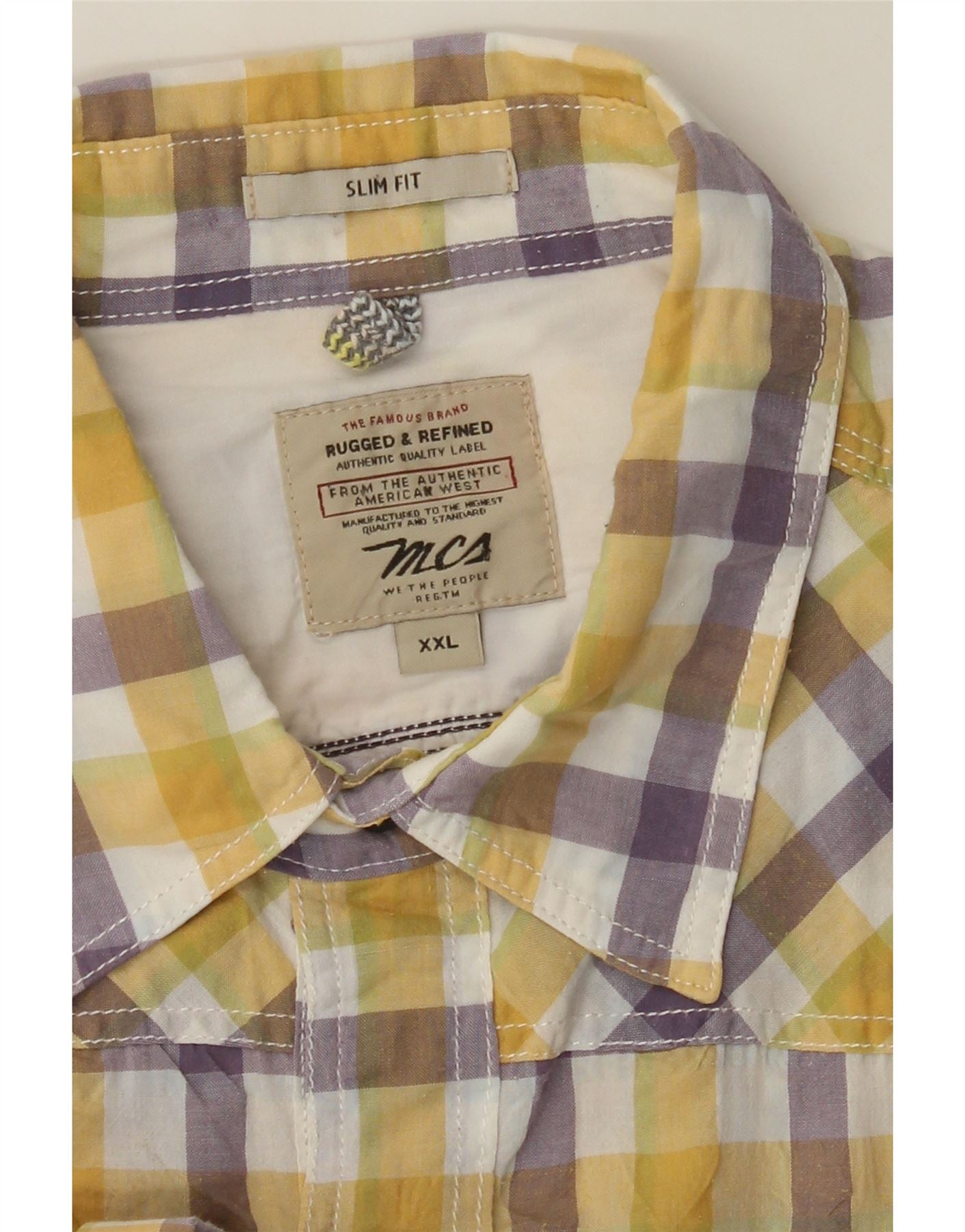 Camicia a maniche corte da uomo Marlboro Classics 2XL in cotone a quadretti giallo