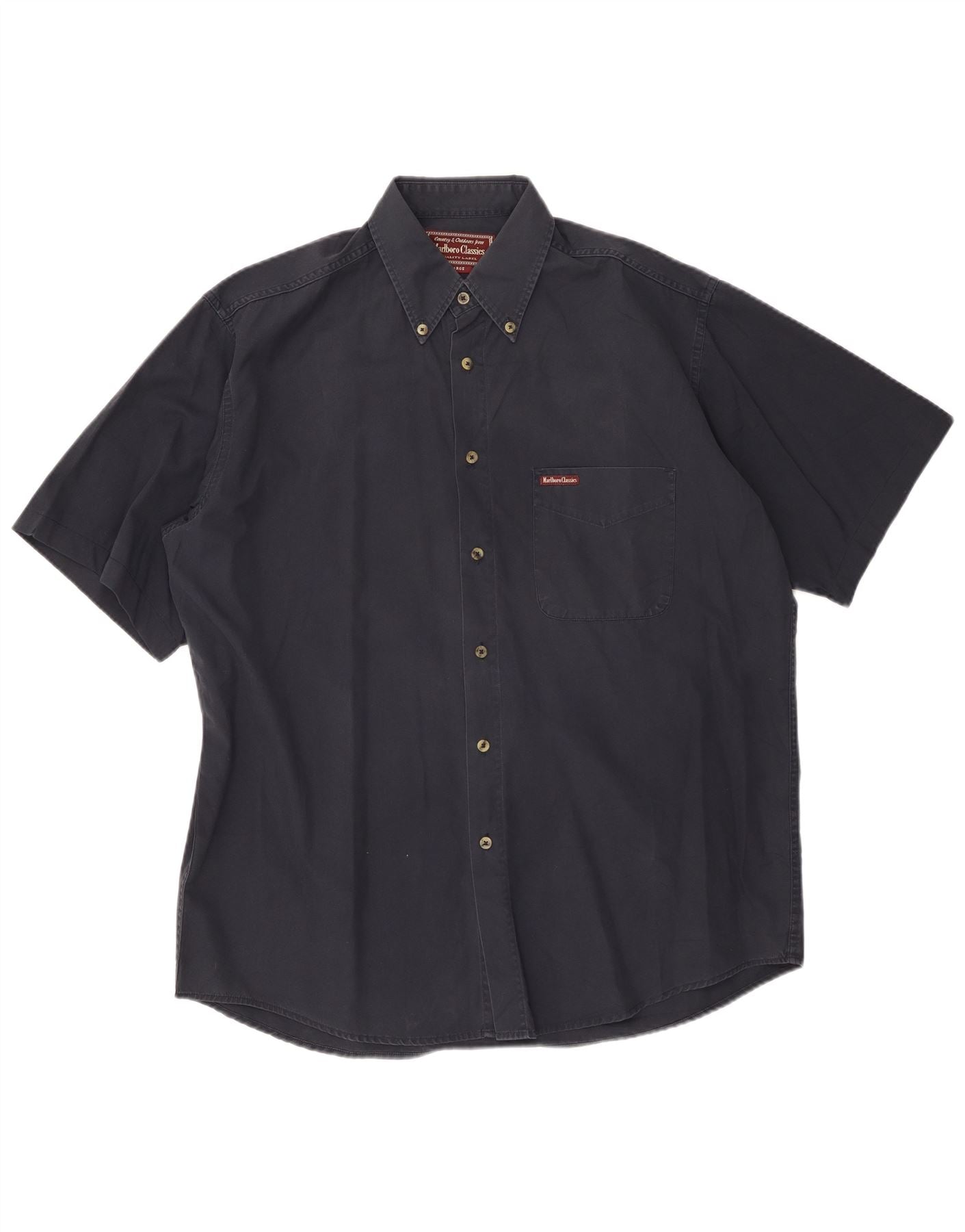 MARLBORO CLASSICS Camicia a maniche corte da uomo Large in cotone blu navy