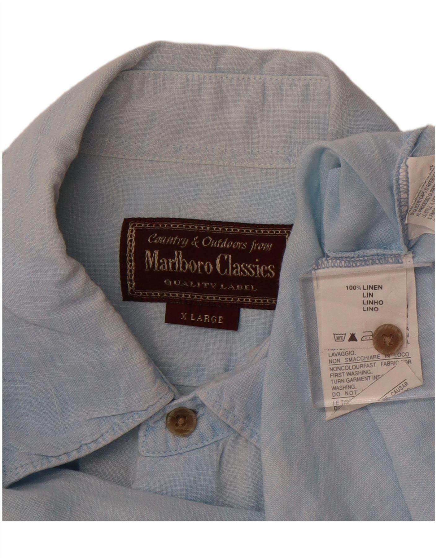 MARLBORO CLASSICS Camicia a maniche corte da uomo XL Lino blu
