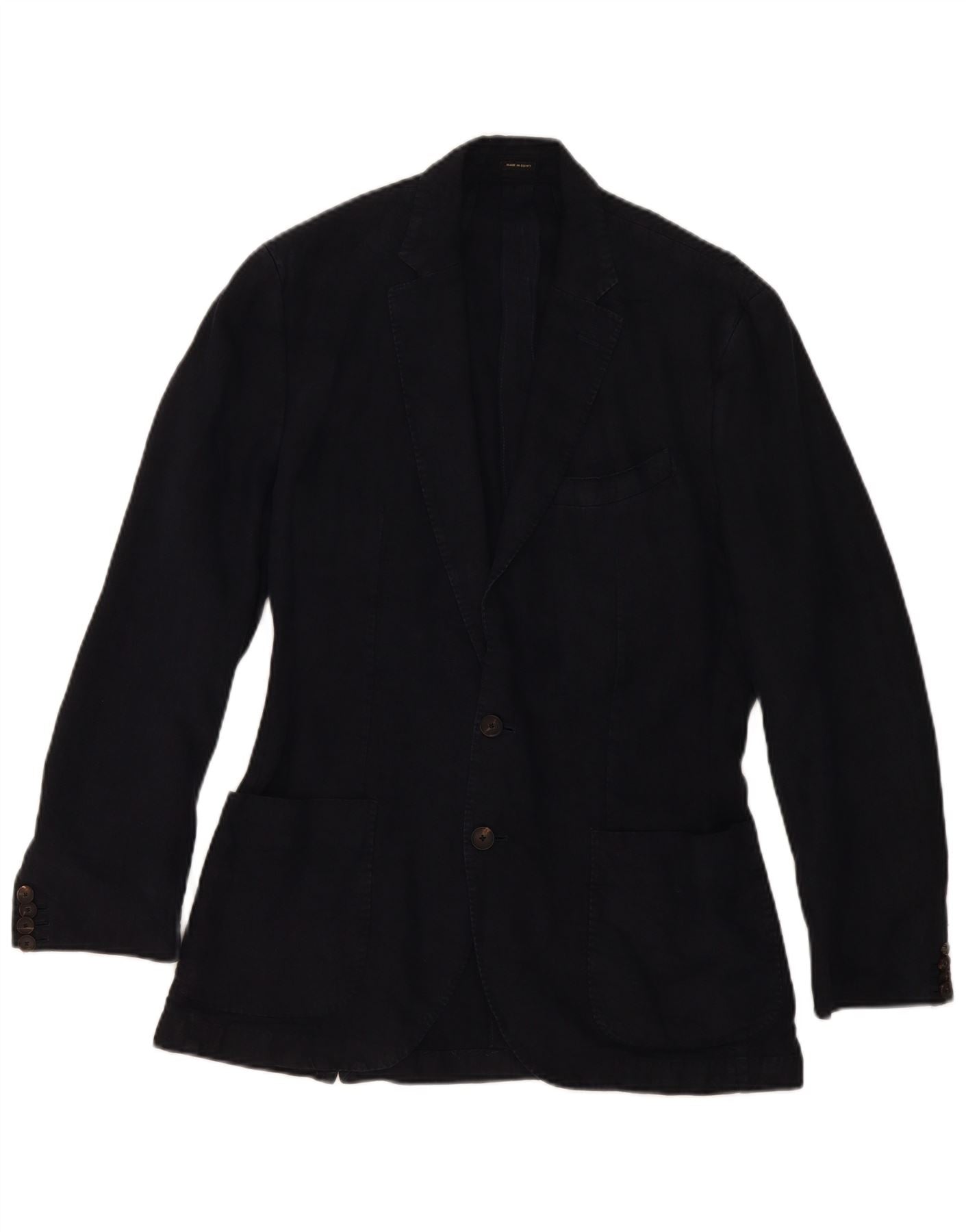 MASSIMO DUTTI Mens 2 Button Blazer Jacket EU 48 Medium Navy Blue Polyester