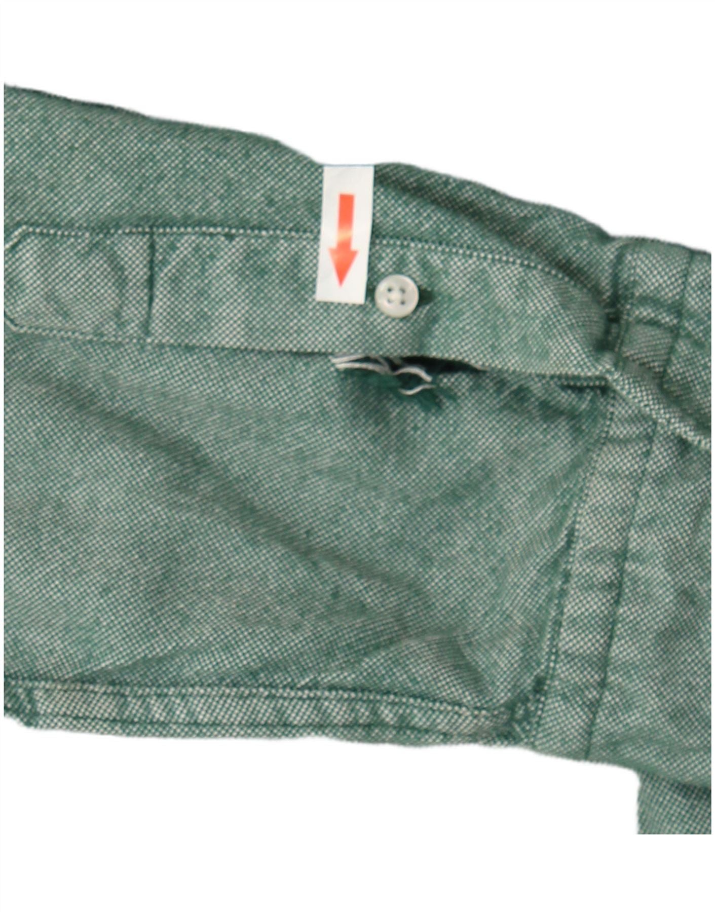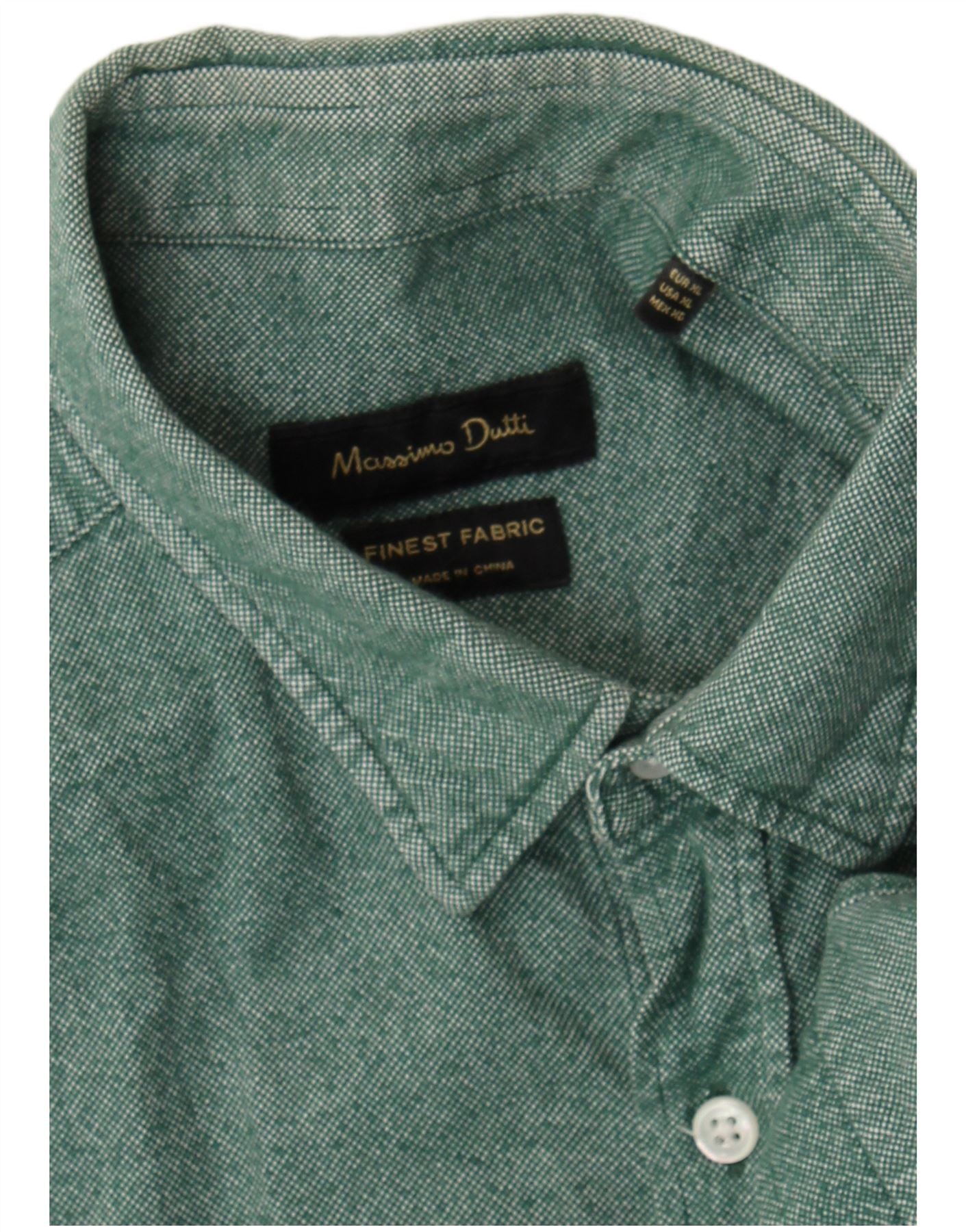 - Descrizione dell'IA: Questa camicia da uomo Massimo Dutti è realizzata in tessuto chambray verde, che offre una sottile trama intrecciata. Presenta uno scollo classico con colletto e un'abbottonatura completa sul davanti. Finitura delle maniche lunghe con polsini abbottonati. La vestibilità regolare garantisce una vestibilità comoda. Una singola tasca sul petto aggiunge dettagli pratici. I bottoni tono su tono completano il look raffinato, perfetto per un completo smart casual.