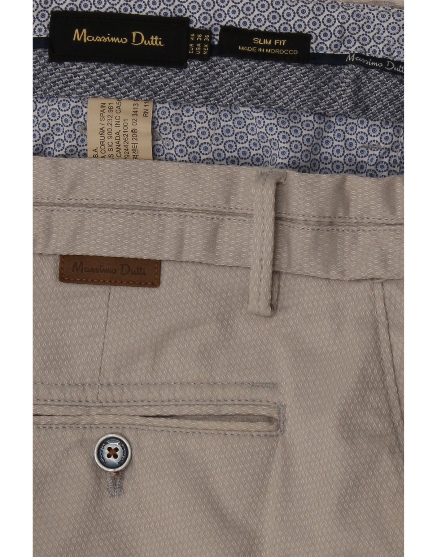 MASSIMO DUTTI Mens Slim Fit Chino Trousers EU 46 XL W36 L34 Grey Spotted