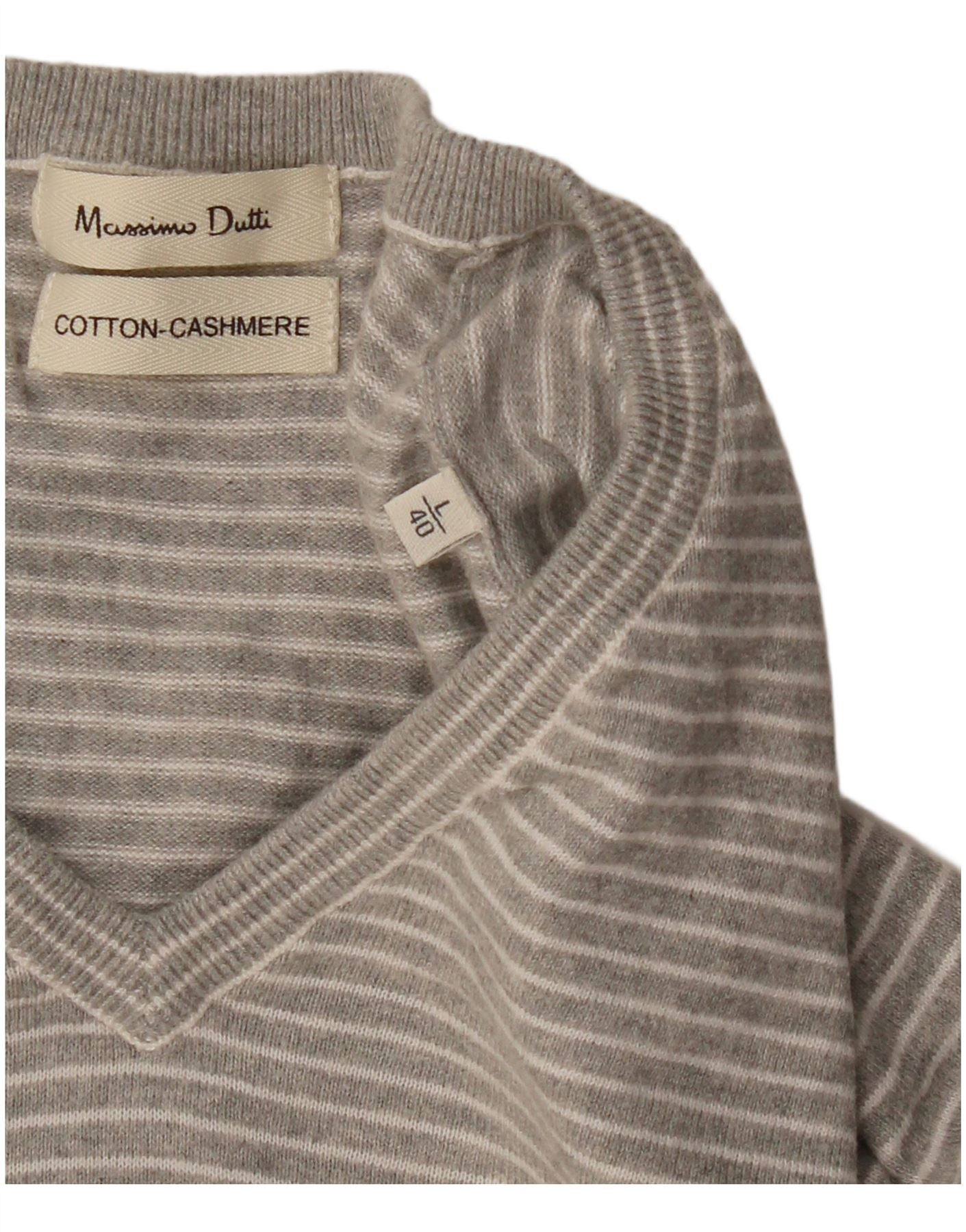 MASSIMO DUTTI Maglione da uomo con scollo a V, cotone a righe grandi grigie
