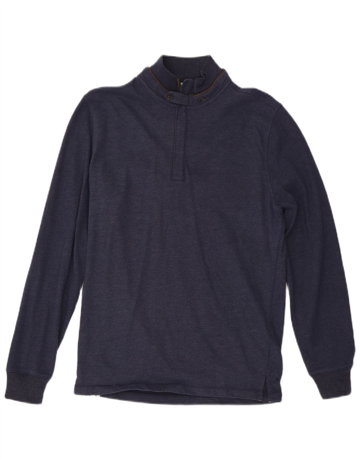 MASSIMO DUTTI Top da uomo con zip e collo a maniche lunghe in cotone blu navy medio
