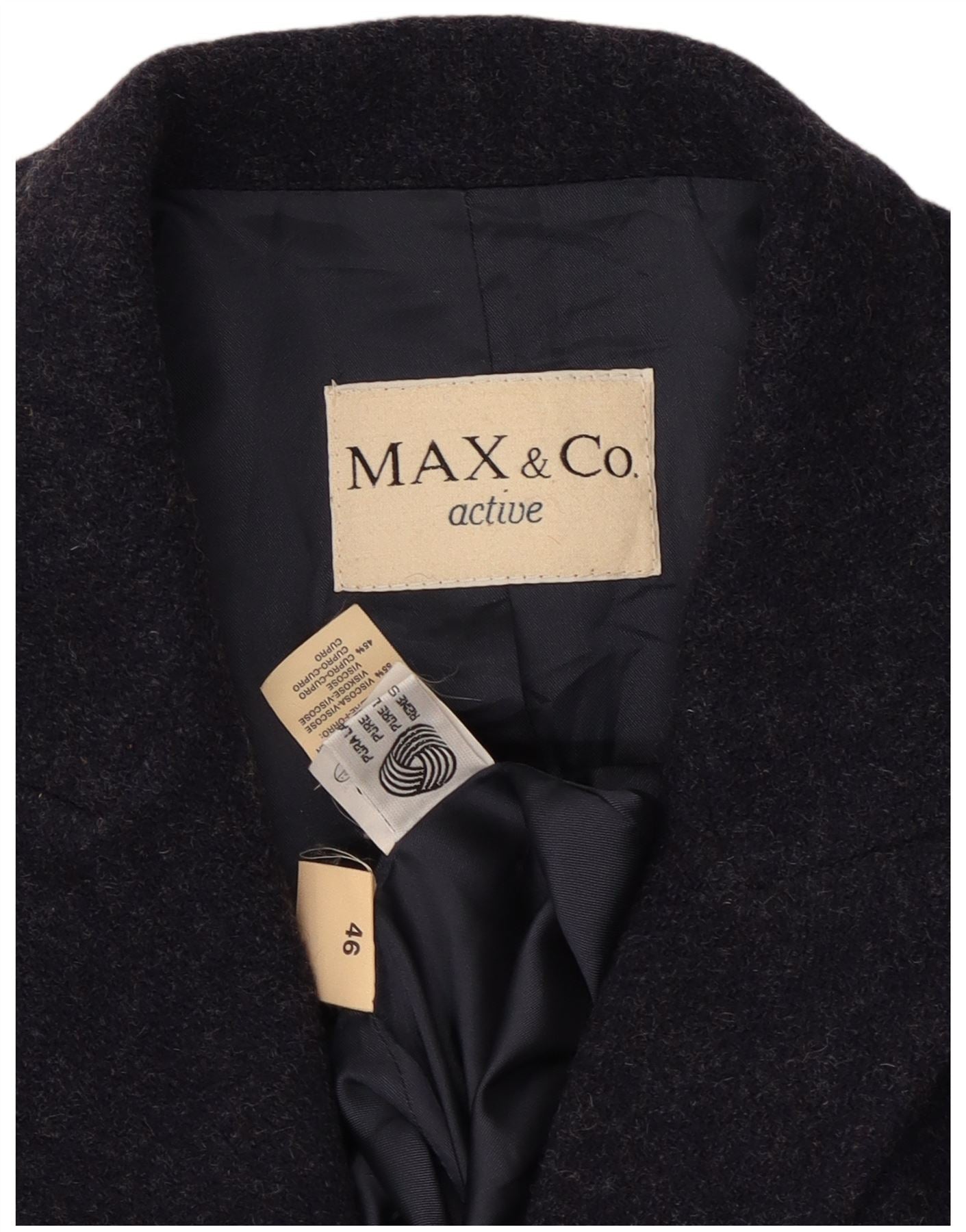MAX & CO. Giacca blazer da donna a 3 bottoni IT 46 Large in lana blu navy